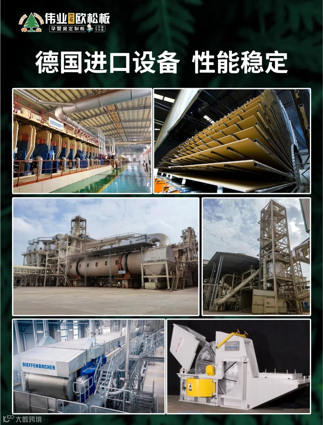 伟业ENF欧松板使用德国进口备生产线加工制作,长木片纵向堆叠铺装,加中间长木片横向堆叠铺装,在200°高温、1000T压力下连续平压,制成无醛添加、无杂质无异味、结构更稳定、承重更优异、更不易变形的欧松板,成为行业的高质量板材领跑者。