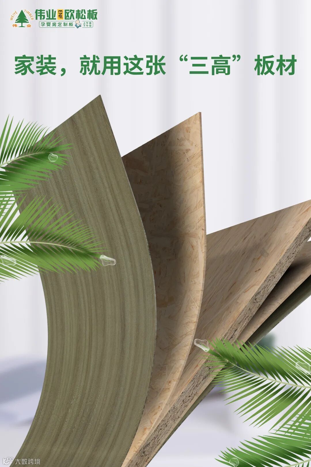 伟业ENF欧松板的基材选用欧洲、俄罗斯的杨木、松木和云杉,以及东南亚的优质尤加利,原木均是100%纯天然、纯优质的一等原木,剔除树皮、杂质,保证了材质纯净无杂质,密度均匀、坚韧稳定、握钉力强、超强的物理性能,能够满足更苛刻的使用环境。