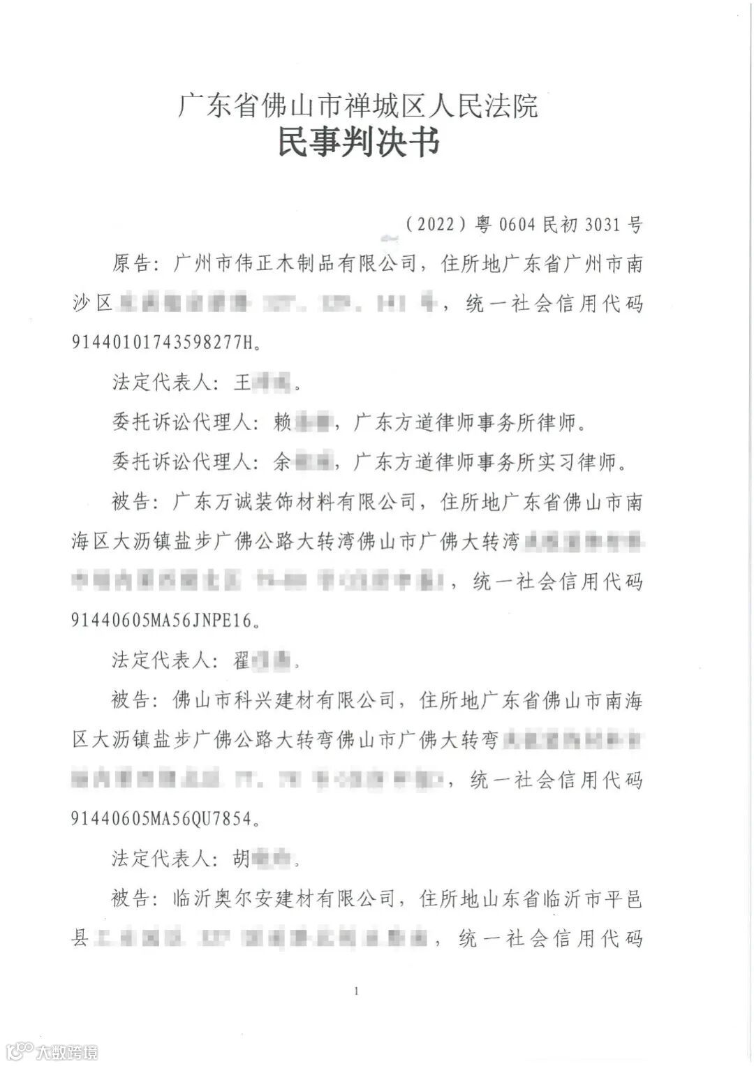 一、原告伟正木业是专业生产抗甲醛环保装饰板材的大型木制品企业,厂区面积10万平方米,每月产能可达10000立方米以上,是行业一线企业;