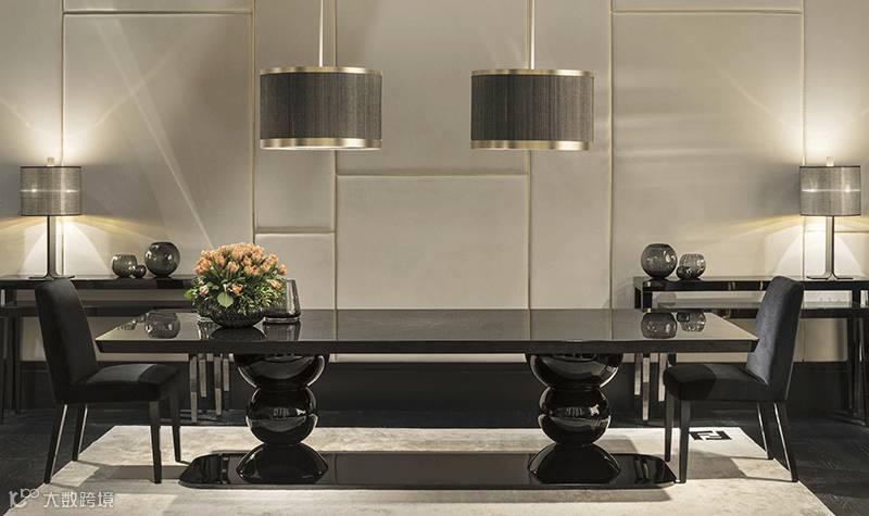 FENDI casa 的餐厅系列,不言而喻的品牌灵魂,时尚元素的设计交织,自得其然的空间色彩搭配对于 FENDI casa 来说简直小菜一碟,材质的应用与饰品的陈设流畅自然,呈现出的不仅是时尚奢华的雍容,更显露着一种永恒经典的贵族气质。