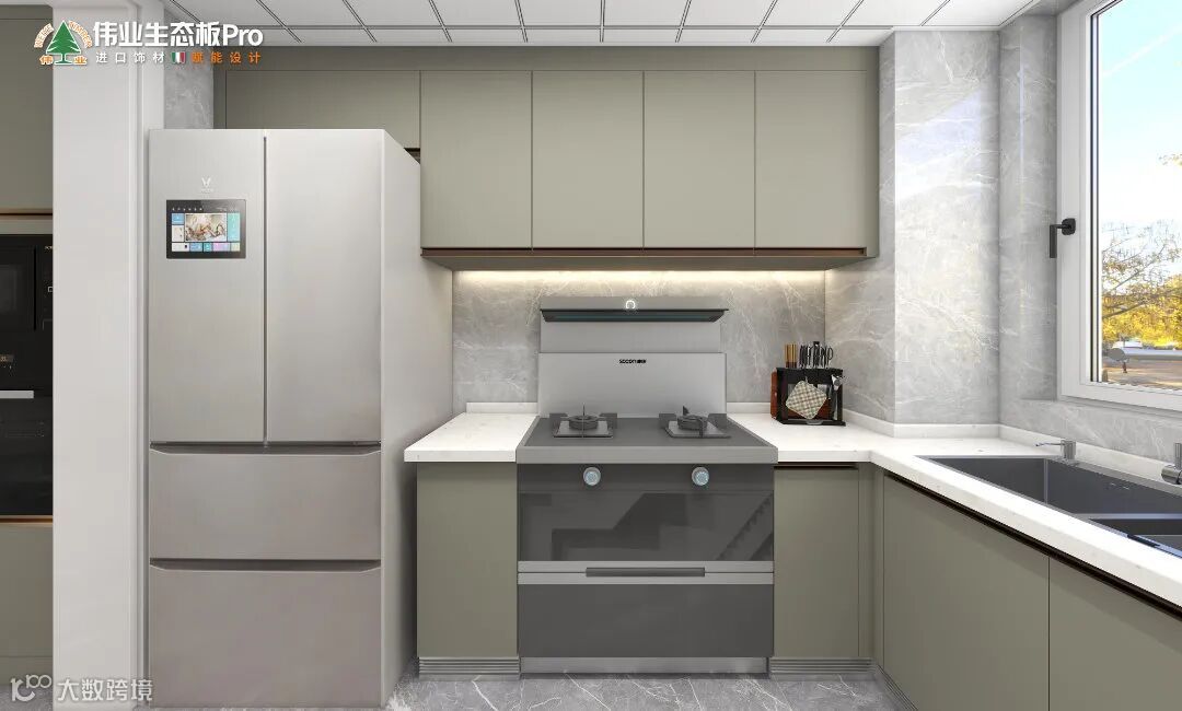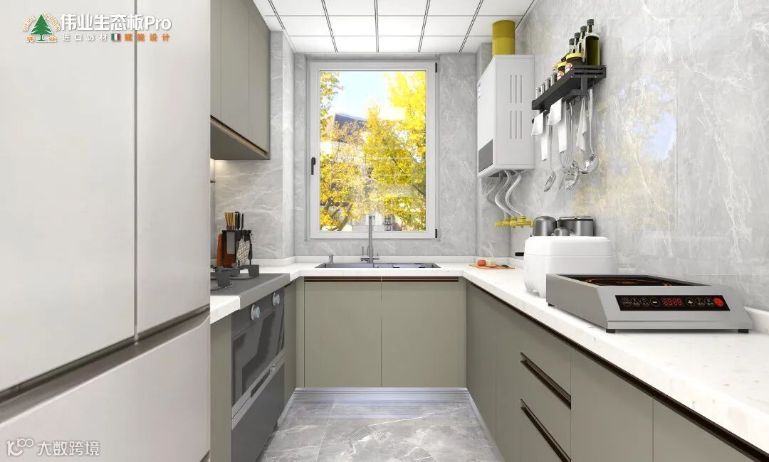 厨房是U型设计,把“烹饪+收纳”合二为一,柜体整齐实用,空间结构上没有一丝浪费。色彩上选择卡其灰,质感细腻、色调内敛,营造大气又精致的高级感,这样的厨房你打多少分?