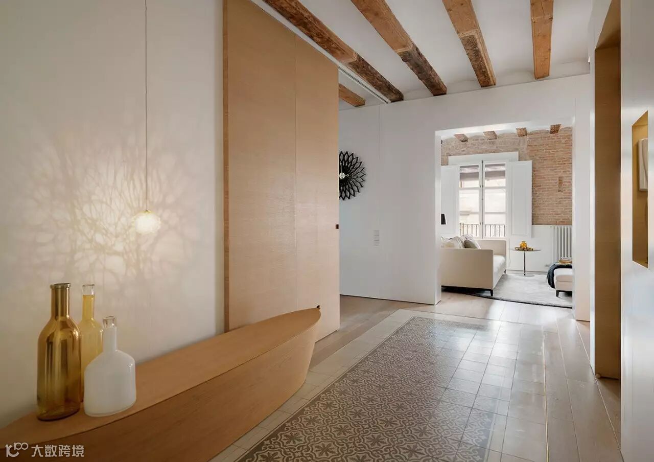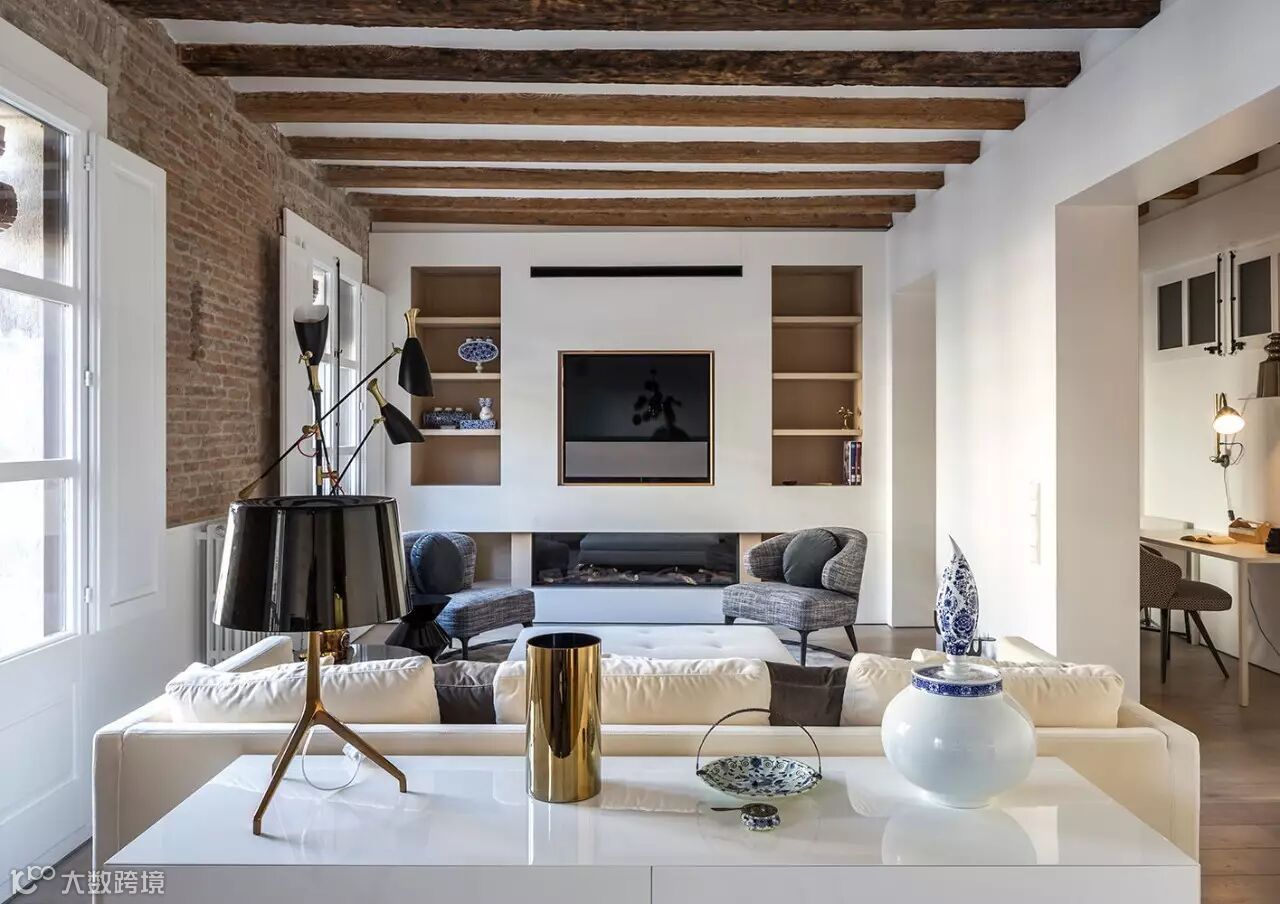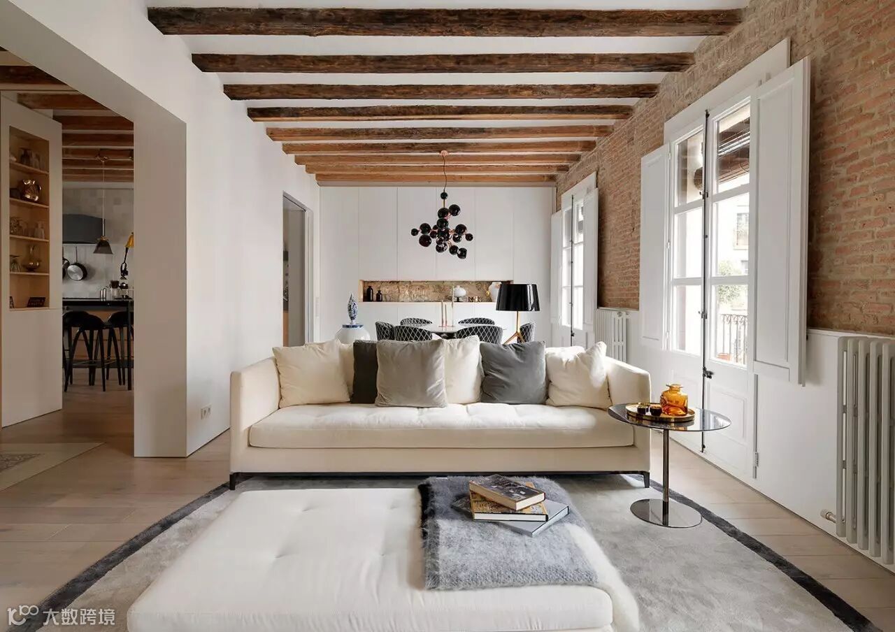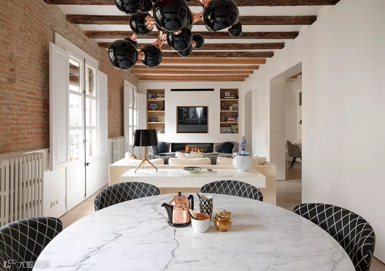 中世纪巴塞罗那中心,哥特区圣弥额尔广场上的公寓风格十分典雅。虽然区内的街道大多窄小黑暗,公寓所在建筑却拥有令人艳羡的绝佳地理位置,位于四楼的公寓更是备受阳光青睐。业主 Anke Summerhill 与就职于 Minotti London 的室内设计师丈夫 John 对公寓进行了翻新,打造出互相连通的开放式空间,同时将砖墙与顶梁的美学价值发扬光大。公寓客厅正对广场,内部装饰包覆裸色织物的沙发与同系列矮凳,搭配包覆 Macro Melange 织物的靠椅。大理石餐桌的周围环绕 Aston 小号靠椅,包覆的钻石造型 Ohara 织物别具一格。