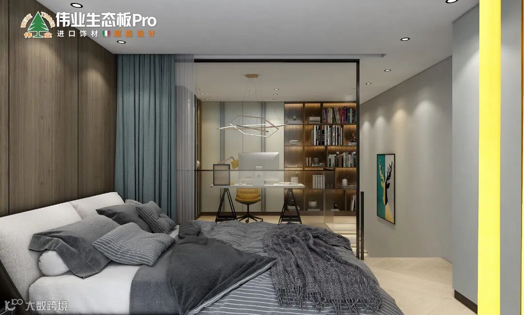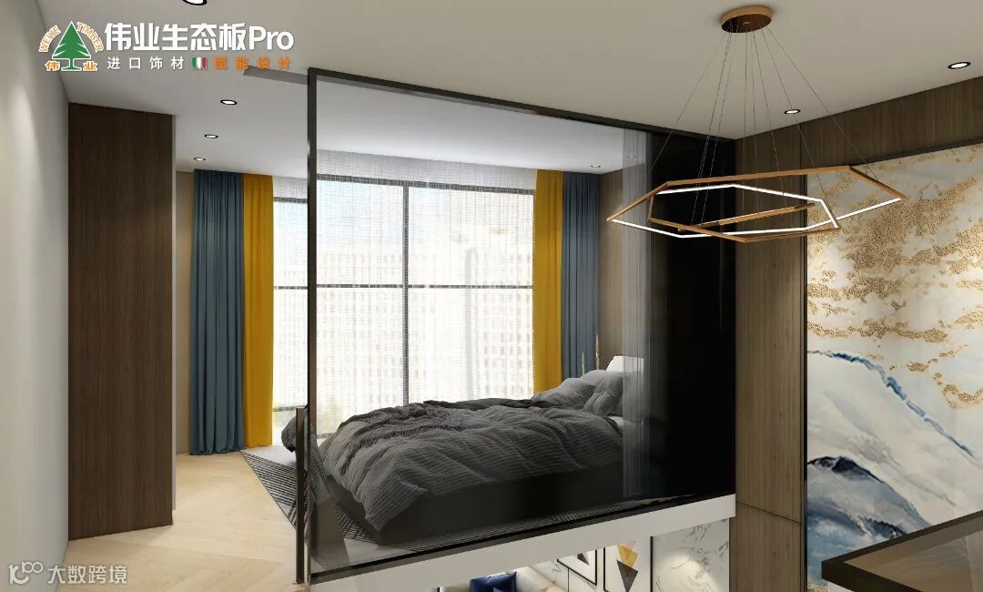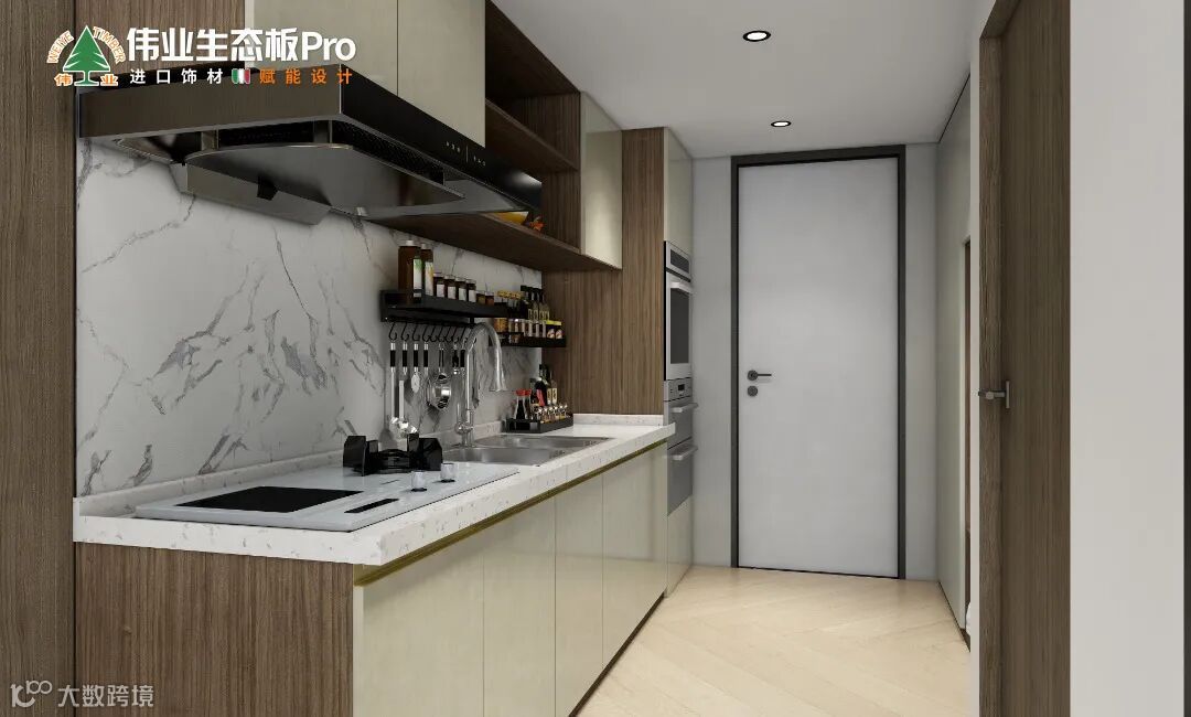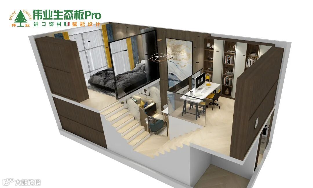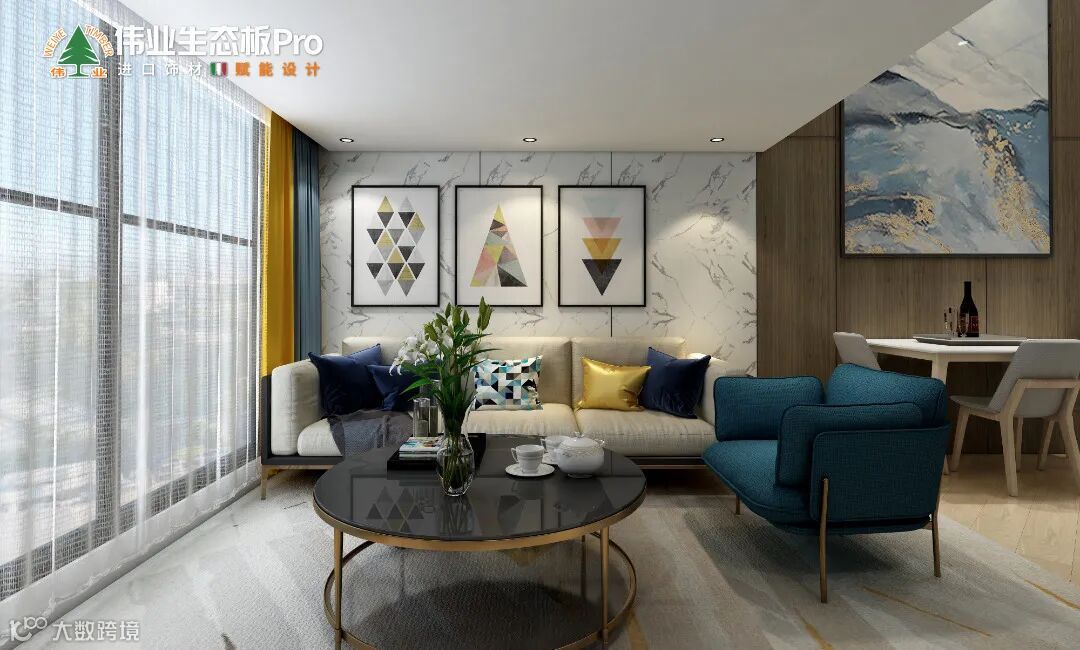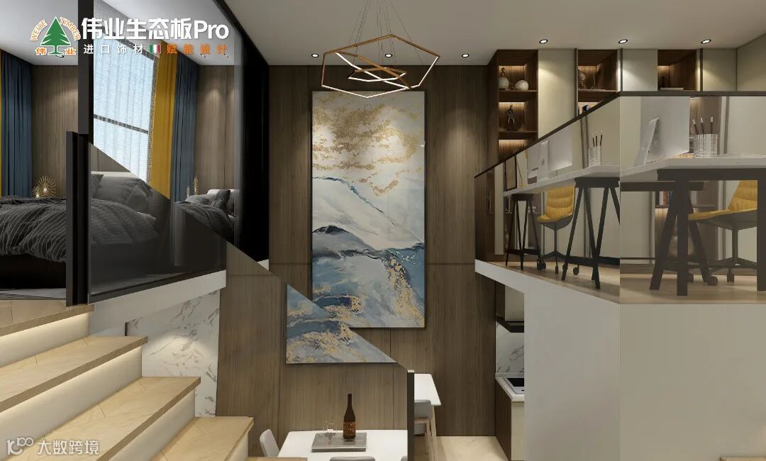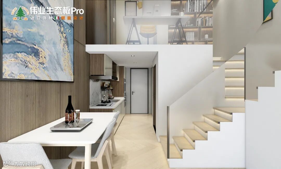 本案运用伟业生态板Pro,从空间布局和使用功能出发,通过不同的材质与色彩,呈现现代风的不同层次感,让整个空间优雅精致,赋予小户型公寓无限可能。