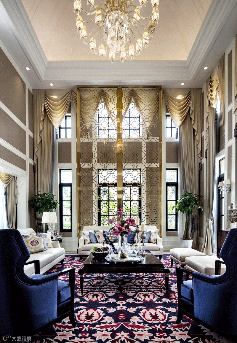“雲起紫金,心遠天地寬”,這是南京鐘山高爾夫別墅群所傳達給人的空間姿態。而 Ricky 一向主張 TOTAL SOLUTION 一體化思維設計,從而在室內空間延續建築外觀的巴羅克設計元素,打造出室內與室外猶如一體舒適、親近大自然的泛空間概念,這樣表達的不僅僅是一種貴圈生活形態,更是在營造一種更個性化、更具唯一性的浪漫與雅氣的氛圍。