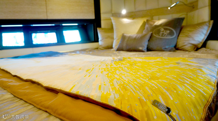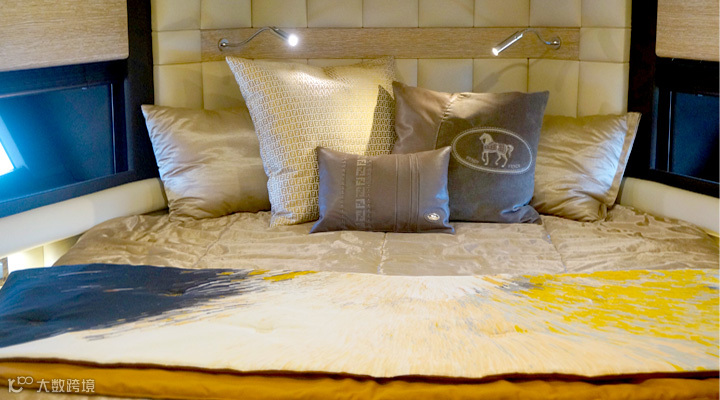 空间之王: 摒弃以往西餐桌改用中式经典圆桌,加之对吧台和餐台的改良,使整个舱室获得了更多空间;不仅如此,在功能配置上,观影电视台采取可伸缩式设计,在非观影模式下,可降下电视变成接待台。舱内设计都围绕人体工学展开,实现空间最大化。