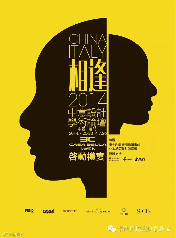 值此中意两国建立全面战略伙伴关系十周年之际,由意大利驻广州总领事馆、意大利米兰理工大学设计学院、意大利家具协会、亚太酒店设计师协会、厦门大学等国际设计产业及相关学术机构一道,拟于2014年7月25日至7月26日在美丽的鹭岛厦门联袂献映中意两国文化交流年度重戏———“2014中意设计学术论坛”。