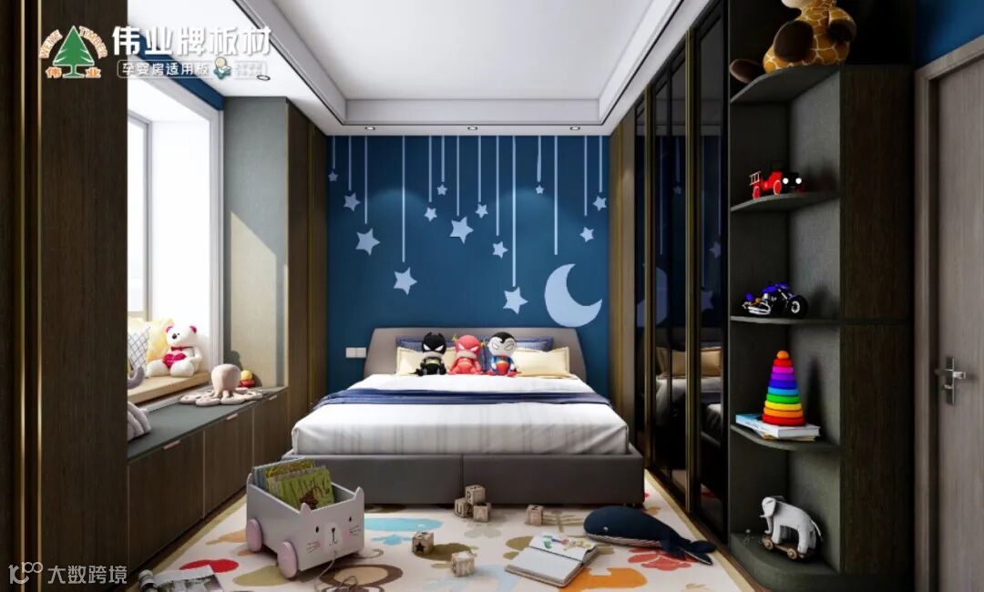 儿童房是孩子的专属小天地,怎样装修才能满足成长需求?如何避免疏漏?跟着伟业牌板材做好以下几点指南,把收纳功能性、环保安全性、成长趣味性等通通考虑到位,犯难的家长们赶紧get起来!