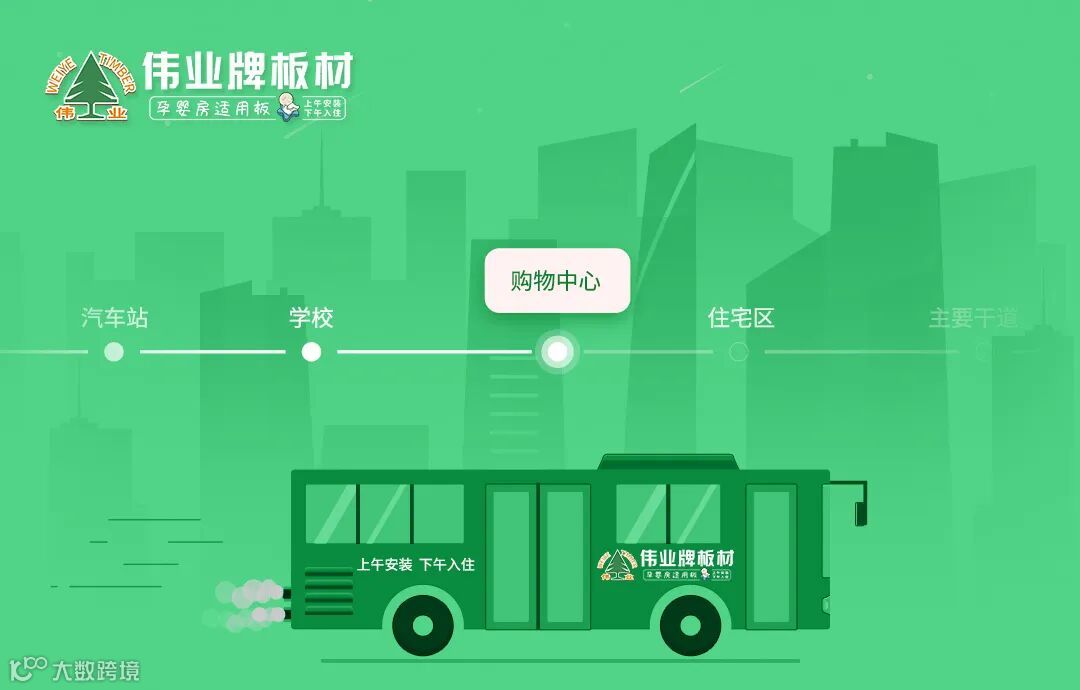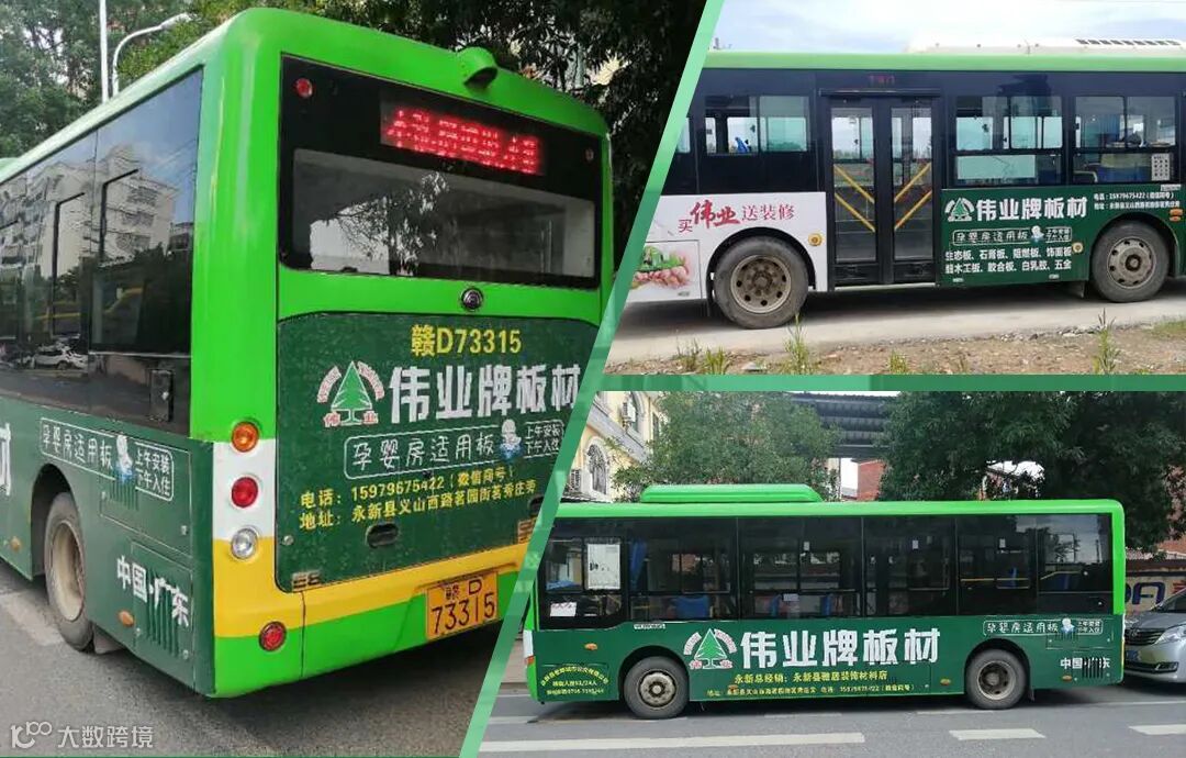 此次公交车体广告线路涵盖县城的主要干道、汽车站、学校、购物中心、住宅区等人流密集的场所,通过全天候不间断高效传播,形成贴近用户、冲击力强、渲染力大的推广效果,大大提升伟业牌板材绿色环保的品牌形象,让“上午安装,下午入住”广告语更加深入人心。