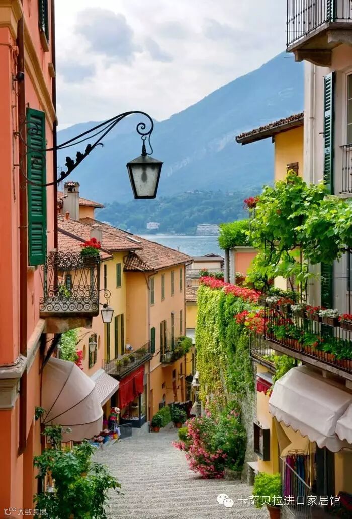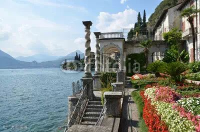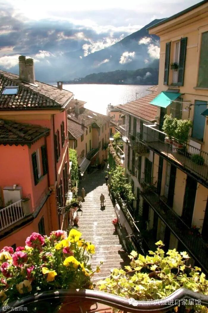 那些石砌房子,有小旅馆,阳台上倚着靠着懒散的度假者,手执一杯葡萄酒,或一册杂志,旁若无人;有露天的咖啡座和餐馆,飘出浓郁的咖啡或奶酪的香味;家家户户门口石阶上花团锦簇。每天午后到黄昏,是小镇最喧嚣的时光,总有游客从不同的地方来,或在小镇消磨一个温馨的下午,或乘船在湖上看看风景。若是周末,来自周围其他城市的度假家庭,会远远多过国外的观光客,说科莫湖是米兰的后花园,一点不假。