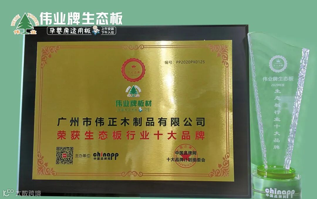 近日,中国品牌网主办了“2020年生态板十大品牌”网络评选活动,旨在探索新时代下中国生态板行业升级,表彰年度优秀品牌,树行业匠心品牌榜样力量,伟业牌生态板以优质的产品性能、卓越的品牌高度,入选榜单!