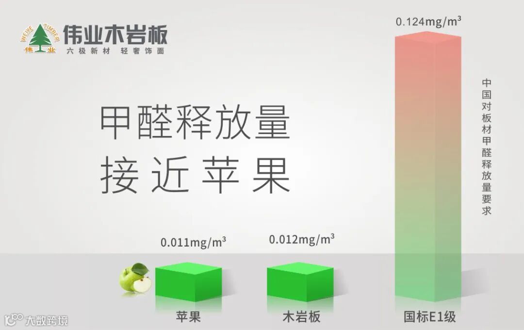 苹果级环保:连续超高温热压工艺,逼出板内微量甲醛,甲醛释放量<0.012mg/m³,接近于苹果的0.011mg/m³