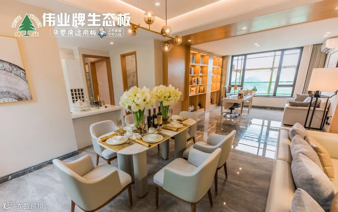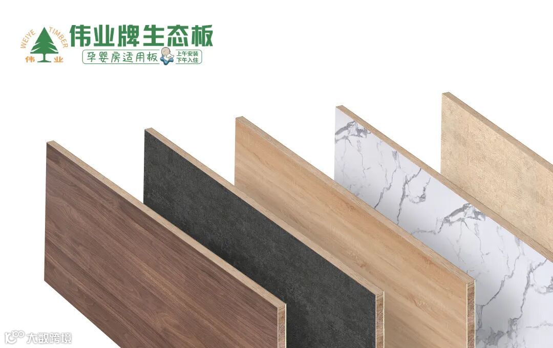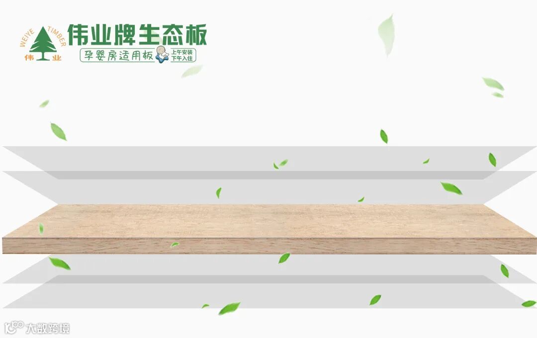 伟业牌生态板的基材使用数码烘干工艺,含水率稳定;辅料采用自产环保胶水,再经过120°CUHST高温净化处理,释放出天然木材自身所含微量甲醛,让产品甲醛含量低至E0级;采用360°微薄木刨切加工技术、表面调色处理技术、原木纹面同步套压技术等,比普通品牌生态板更优质、更耐用。