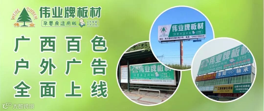 伟业牌板材品牌推广再度出击,精准投放,全线启动百色市户外广告推广计划,全面发力高速服务区T型高炮台广告、南大建材综合市场楼顶广告、百色市右江区候车亭广告等,形成全方位、大规模、高频次的线下广告强势攻势,霸屏全城,直达意向客户群,全面地区提升品牌综合影响力。