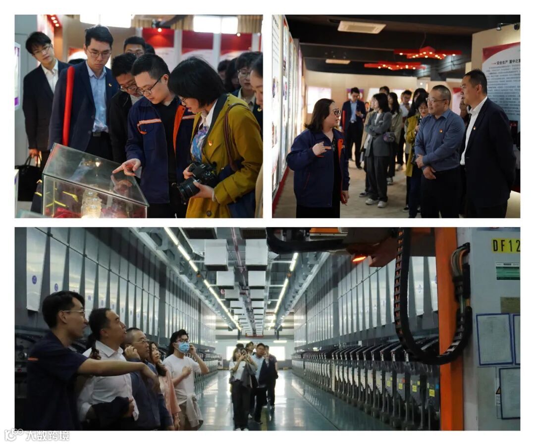 座谈会后,两家分行团员青年参观了企业的党群服务中心,详细了解新凤鸣“五双工作法”等党建工作特色。随后来到生产一线,在新凤鸣“聚酯长丝未来工厂”深入纺丝、卷绕、包装车间,系统了解了企业的生产工艺流程,近距离感受了工业机器人、5G智能化等现代化信息技术在化纤行业的运用情况。