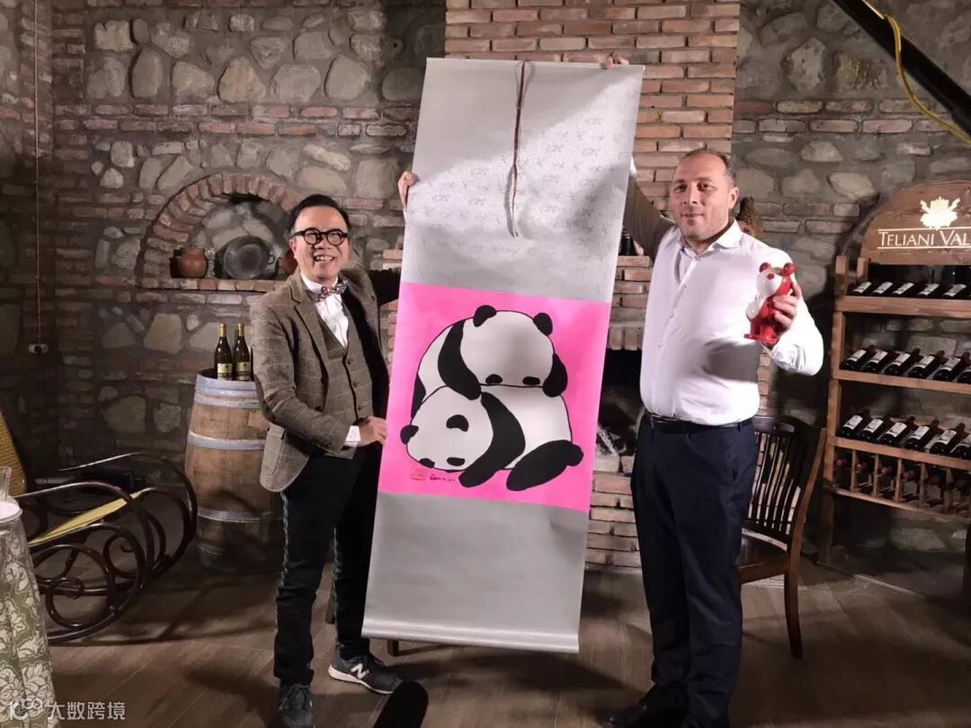 黎头先生向格鲁吉亚友人赠送自己创作的艺术品《快乐熊猫》