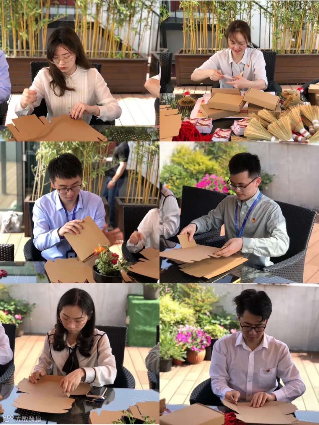 宣誓仪式结束后,分行团委及团员青年集体制作“爱心助农锅刷”。近年来,进出口银行浙江省分行认真落实党中央关于坚决打赢脱贫攻坚战的决策部署,助力多地扶贫、乡村振兴。在分行党委的领导下,团员青年们积极参与到江山市碗窑乡府前村的对口帮扶工作中去,为失明低收入农户制作的锅刷进行宣传和助销。本次主题团日活动中,分行团委和团员青年共同制作和包装“爱心助农锅刷”,以实际行动助农增收,展现团员担当。