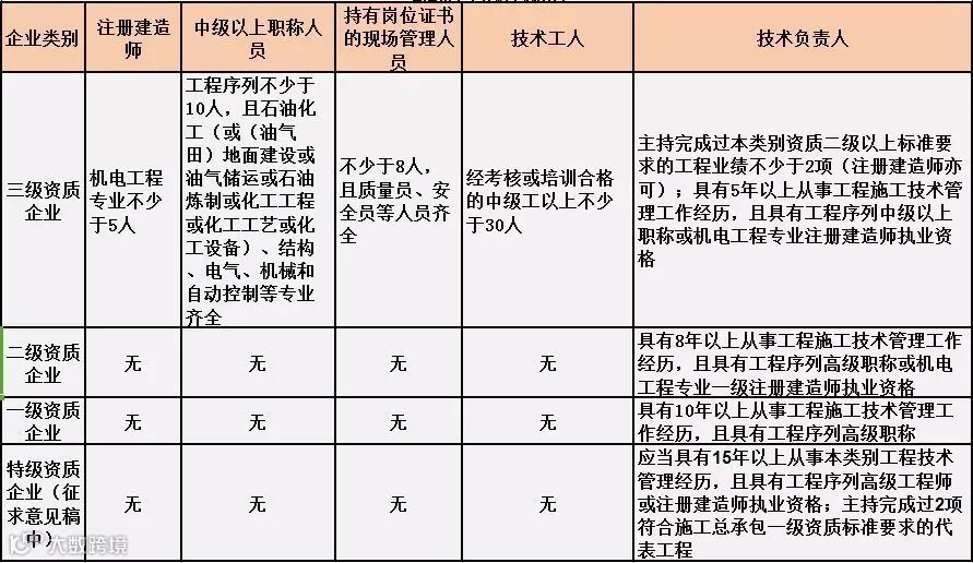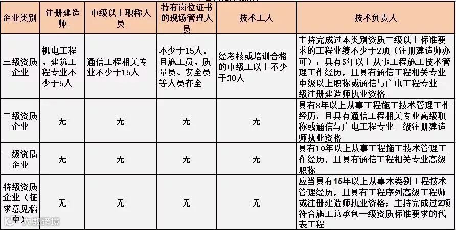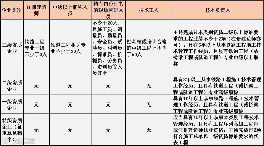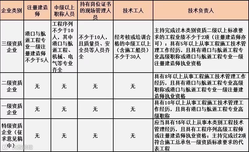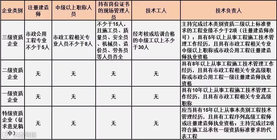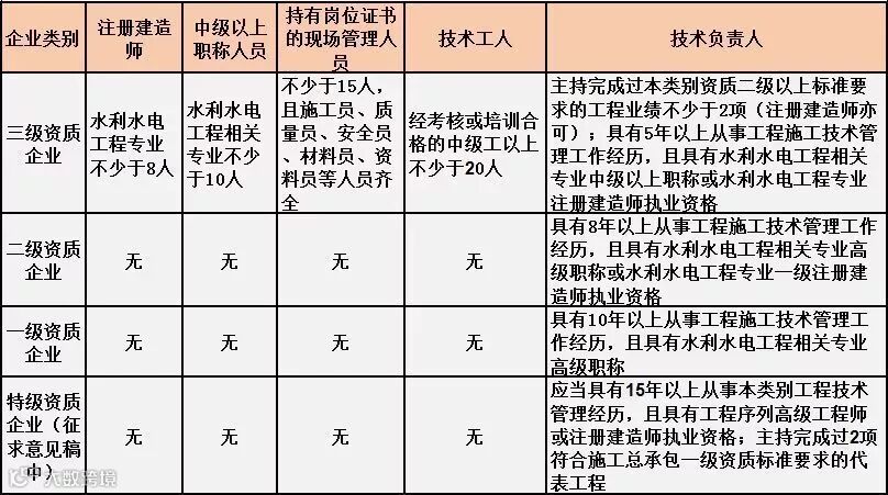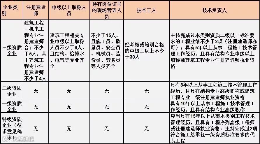 换句话说,并不是所有企业资质都不要求有建造师等企业人员。施工总承包三级资质企业对建造师等人员仍有要求,一级资质、二级资质企业保留技术负责人这一项要求,特级资质另有规定。