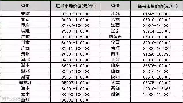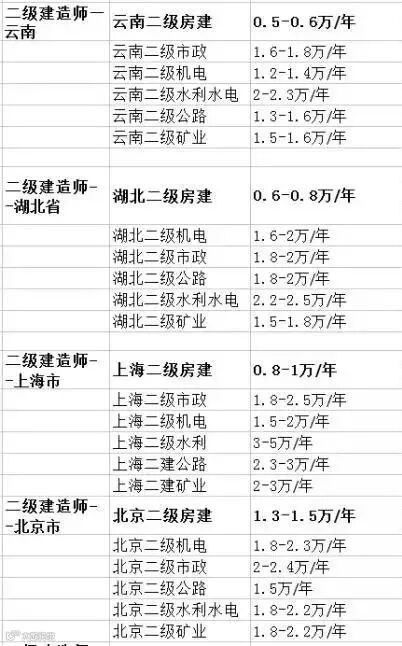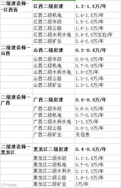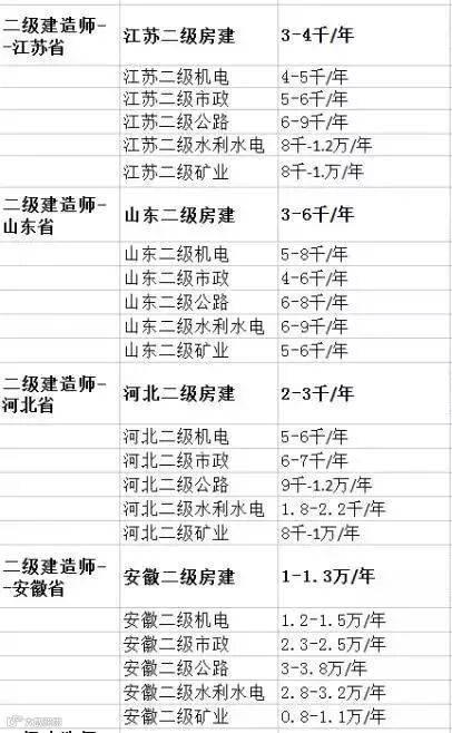 以下各省份二级建造师证书最新行情,仅供参考!