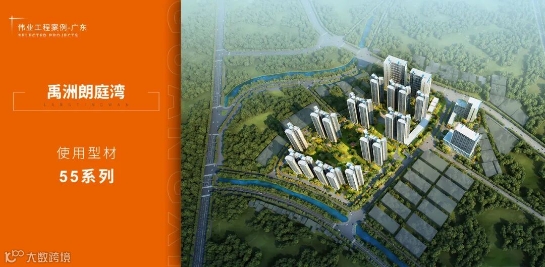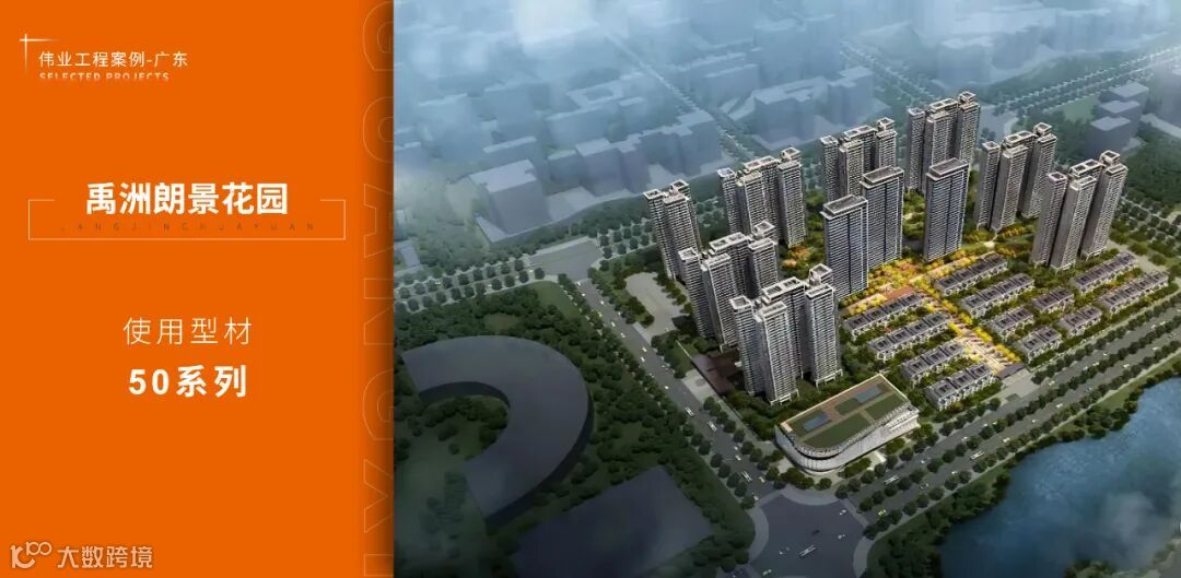 禹洲朗庭湾地处顺德勒流,依傍城市绿地黄连人民公园而建。怀揣着打造品质居所的美好愿景,禹洲地产项目采用伟业铝材55系列产品,营造美好的生活体验。