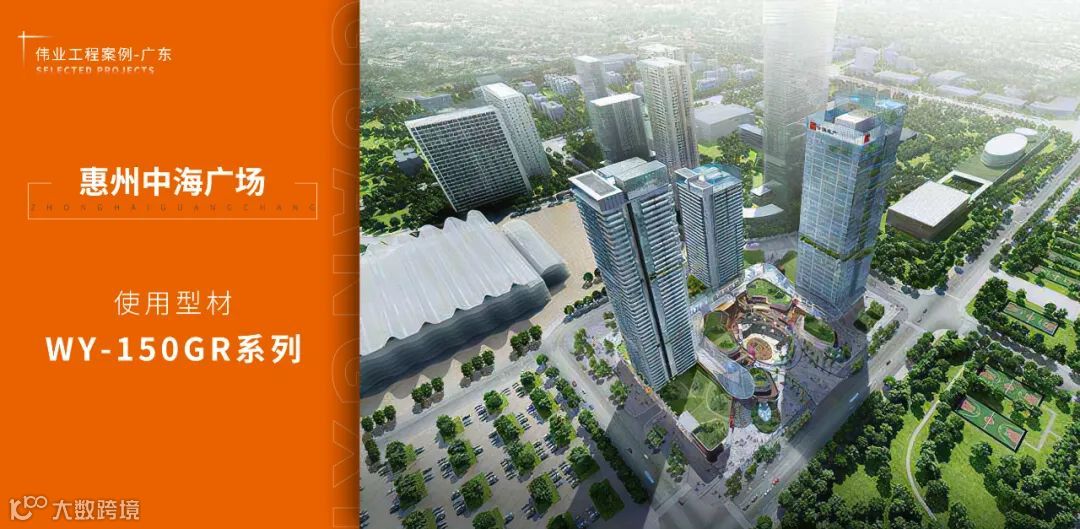 中海广场是主楼150米,由3栋塔楼组成的综合体,含酒店、办公、商场及其他配套设施。项目采用WY-150GR系列幕墙产品,刷亮全球第十座中海广场的闪亮名片,为打造惠州江北CBD而发力。