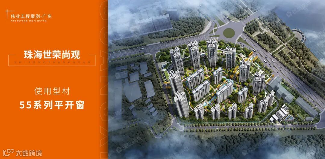 世荣尚观屹立“一河两岸”,北倚尖峰山,南邻14公里黄杨河,项目采用伟业55系列平开窗产品,助力世荣兆业精心匠筑。