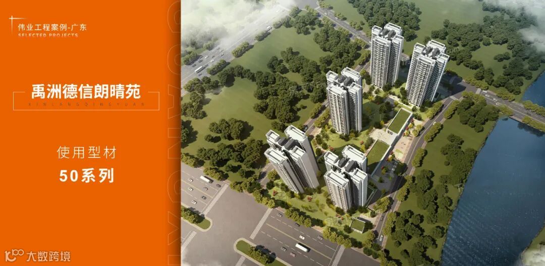 禹洲德信朗晴苑择址沧江河畔,坐拥东洲鹿鸣小镇、美的鹭湖森林度假区等、泰康山等生态旅游资源,以生态焕新生活格调。项目采用伟业50系列铝型材产品。