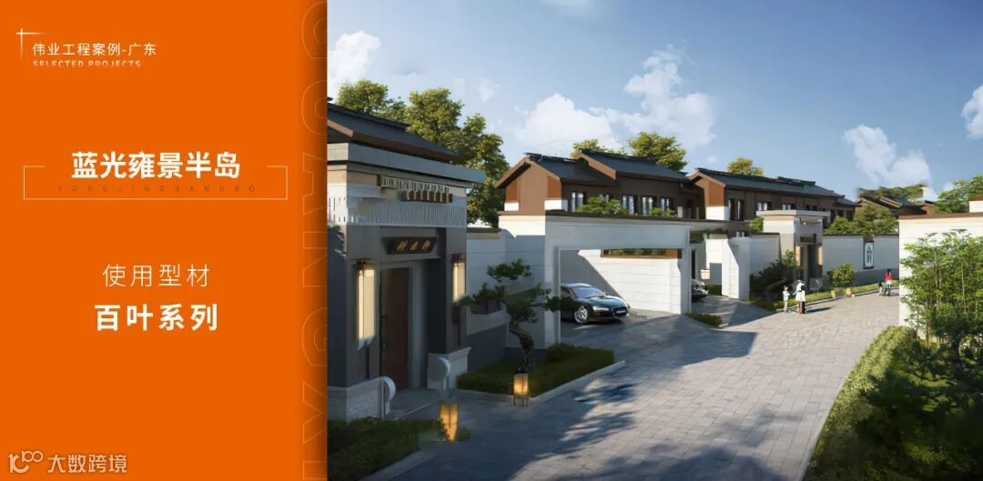 蓝光雍景半岛,作为蓝光地产华南地区第二个雍景系列项目,以高品质打造城市人文典居。在型材方面,采用伟业百叶系列产品,与中式建筑美学相结合,呈现当代贵雅东方府第之美。