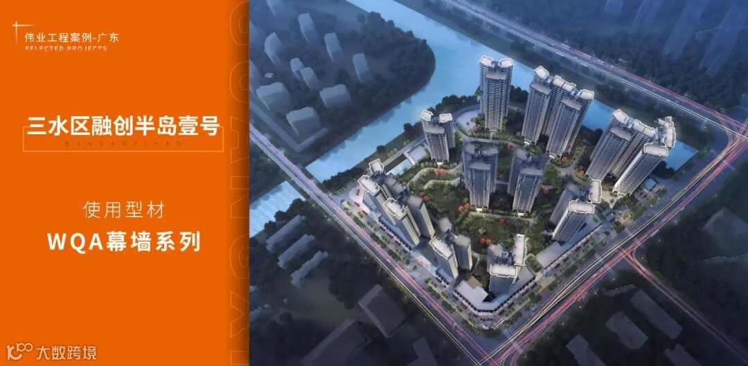 型材上选用伟业WQA幕墙系列产品,带来高颜值的水晶天幕外立结构,塑造建筑简约、大气、通透的气质,成为三水新城耀眼封面风景线。