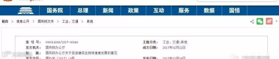 2017年国务院发布《关于促进建筑业持续健康发展的意见》(国办发〔2017〕19号),国家为建筑业改革发展出台了“顶层设计”性质的文件。