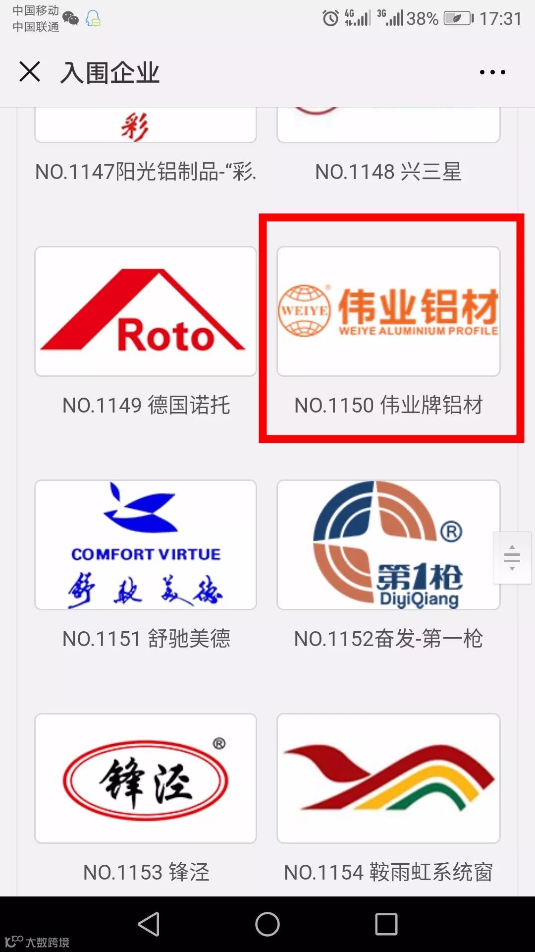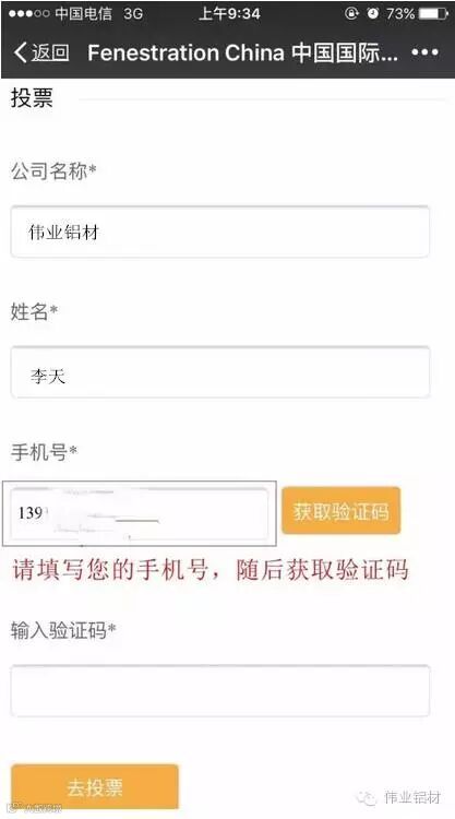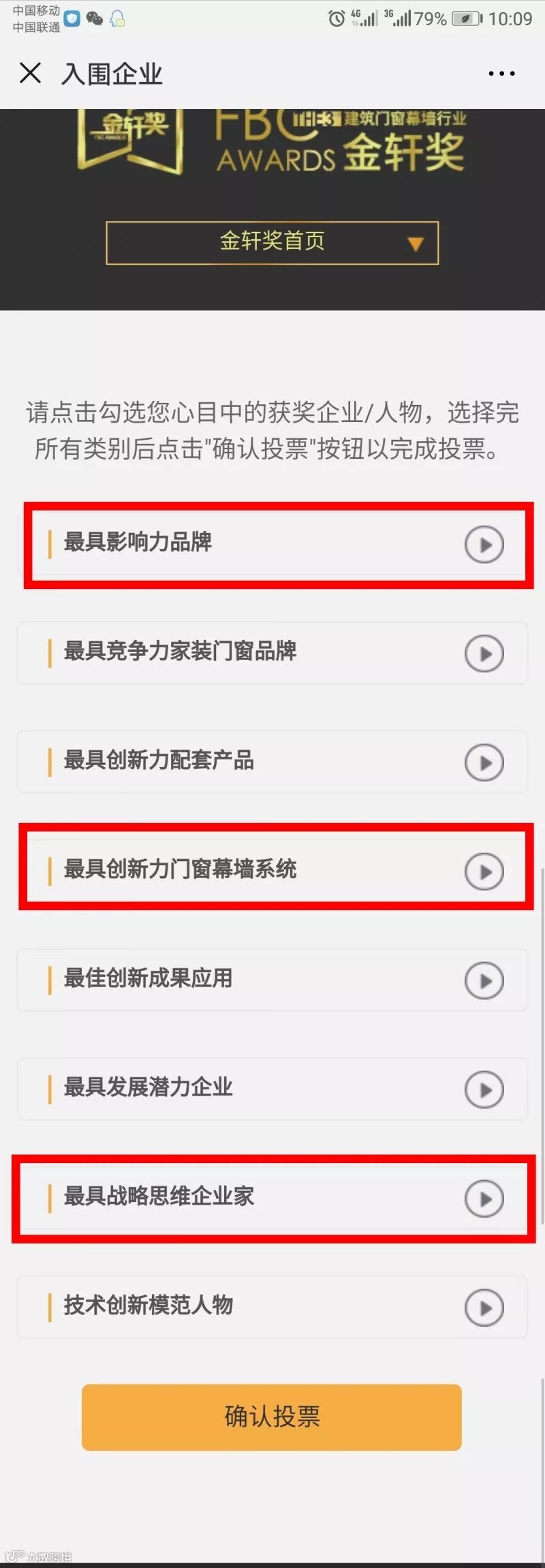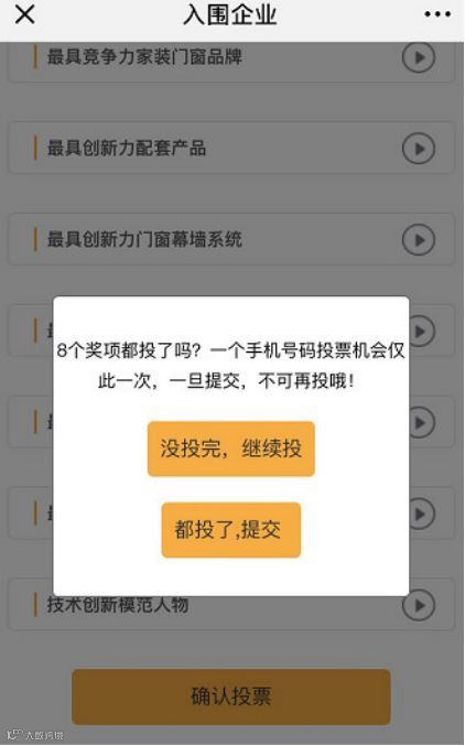 进入入围企业投票页面——分别选择1150号最具影响力品牌伟业铝材、2222号伟业PD门最具创新力门窗幕墙系统、5114最具战略思维企业家进行投票。