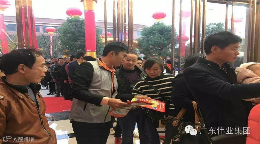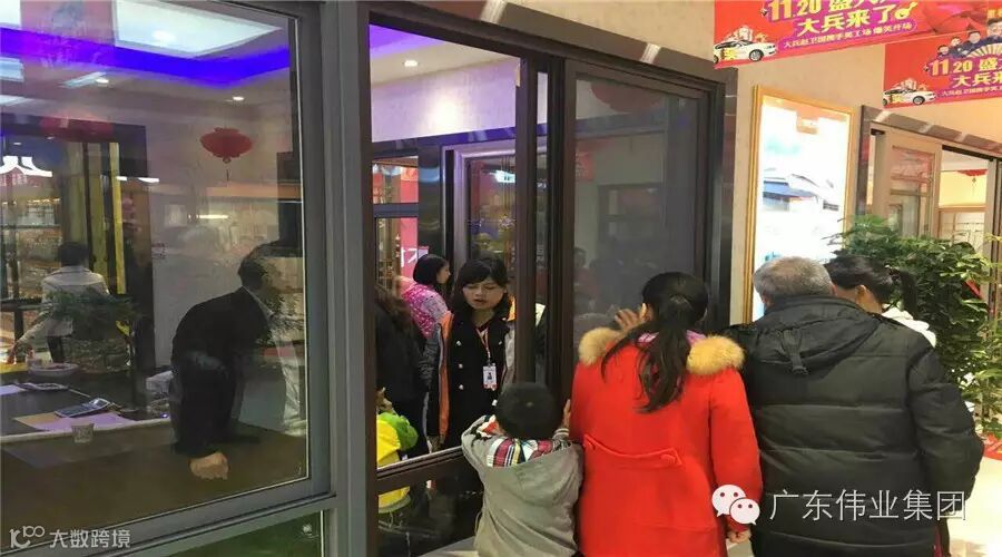 ▲开业现场、伟粉们排队进入伟业门窗展馆