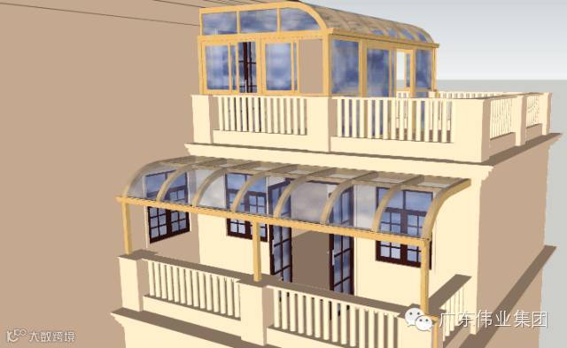 4、此系列阳光房下面由大边梁与立柱搭建结构框架,框架四周的门窗可由客户自行选择;
