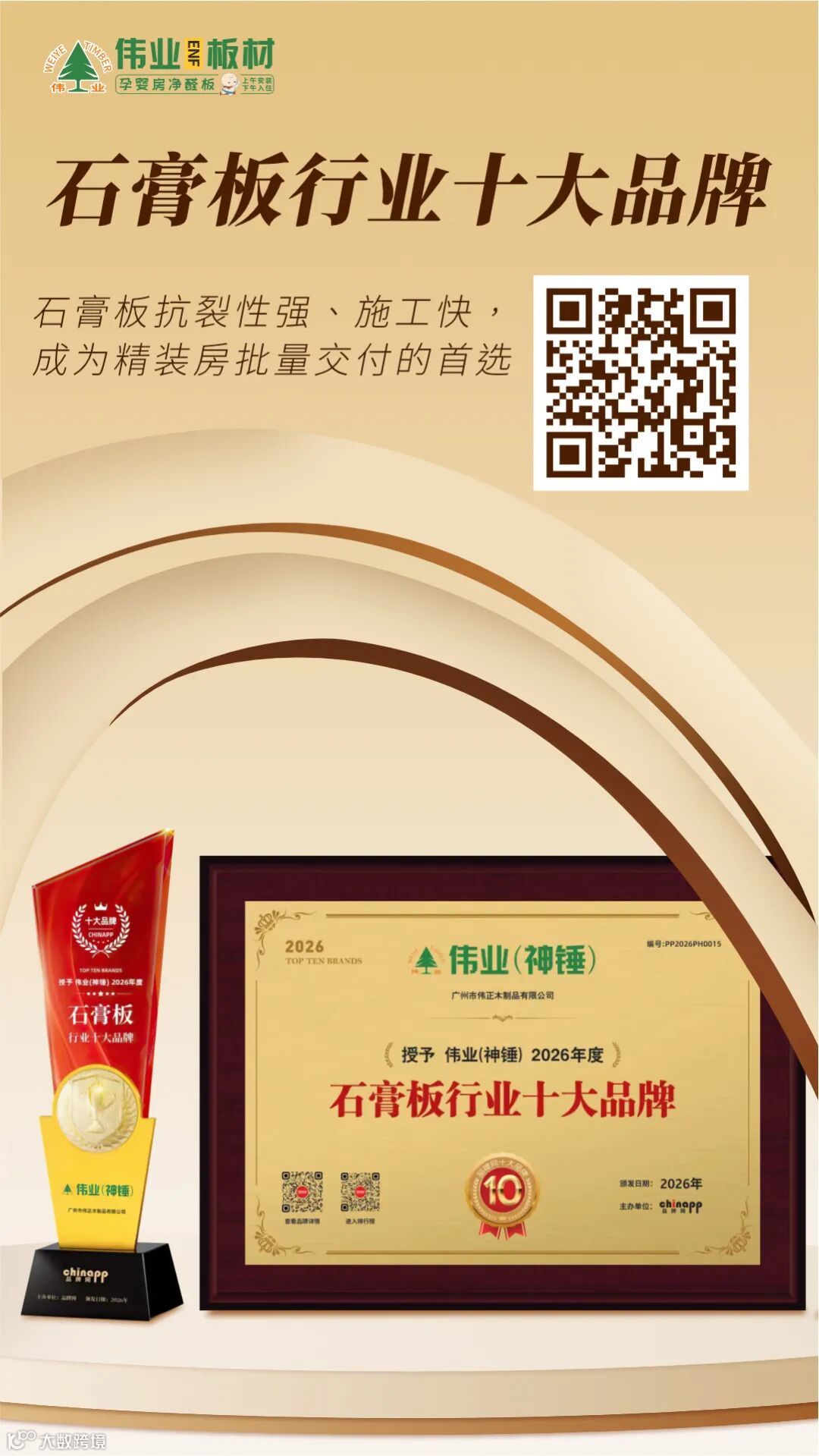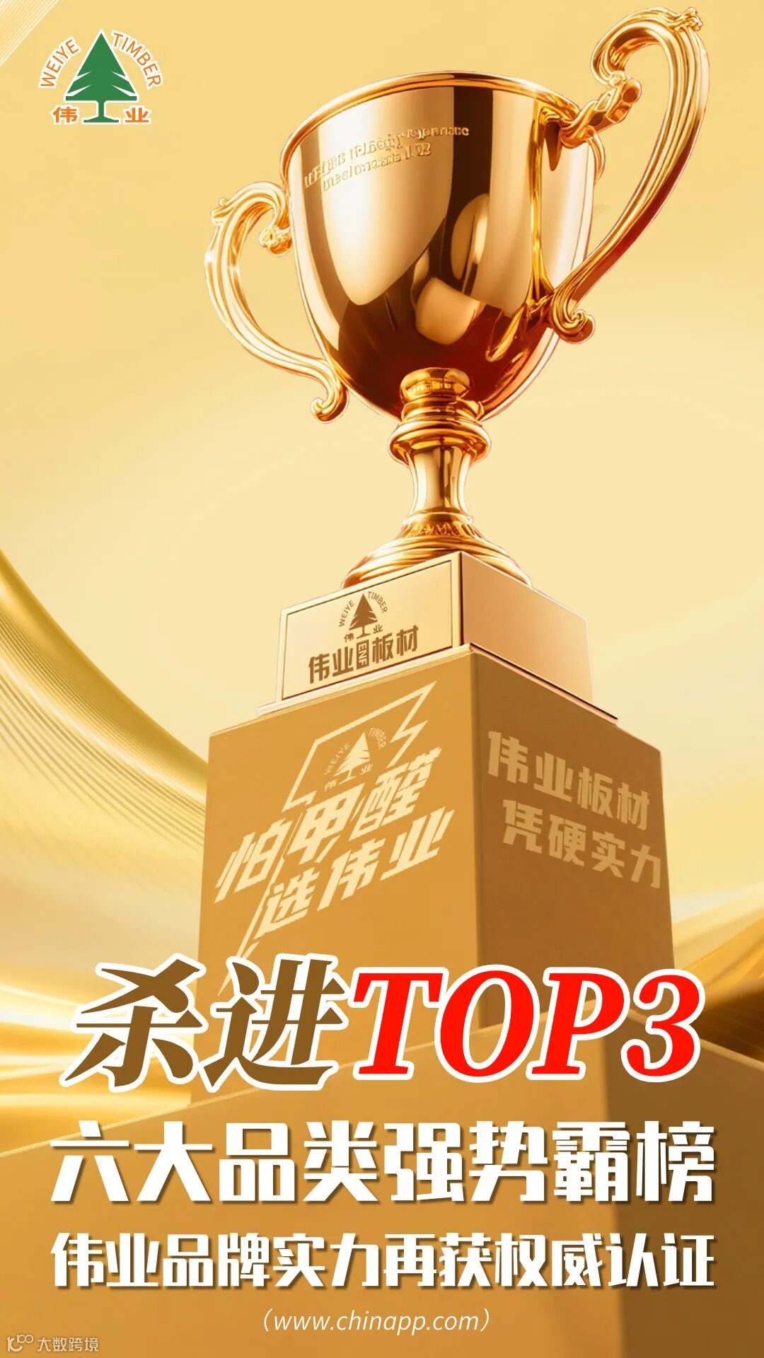 近日,品牌网(chinapp.com)正式发布年度建材行业权威榜单。在六大核心板材品类中,伟业品牌强势入选全部榜单,并连续多年稳居TOP3!