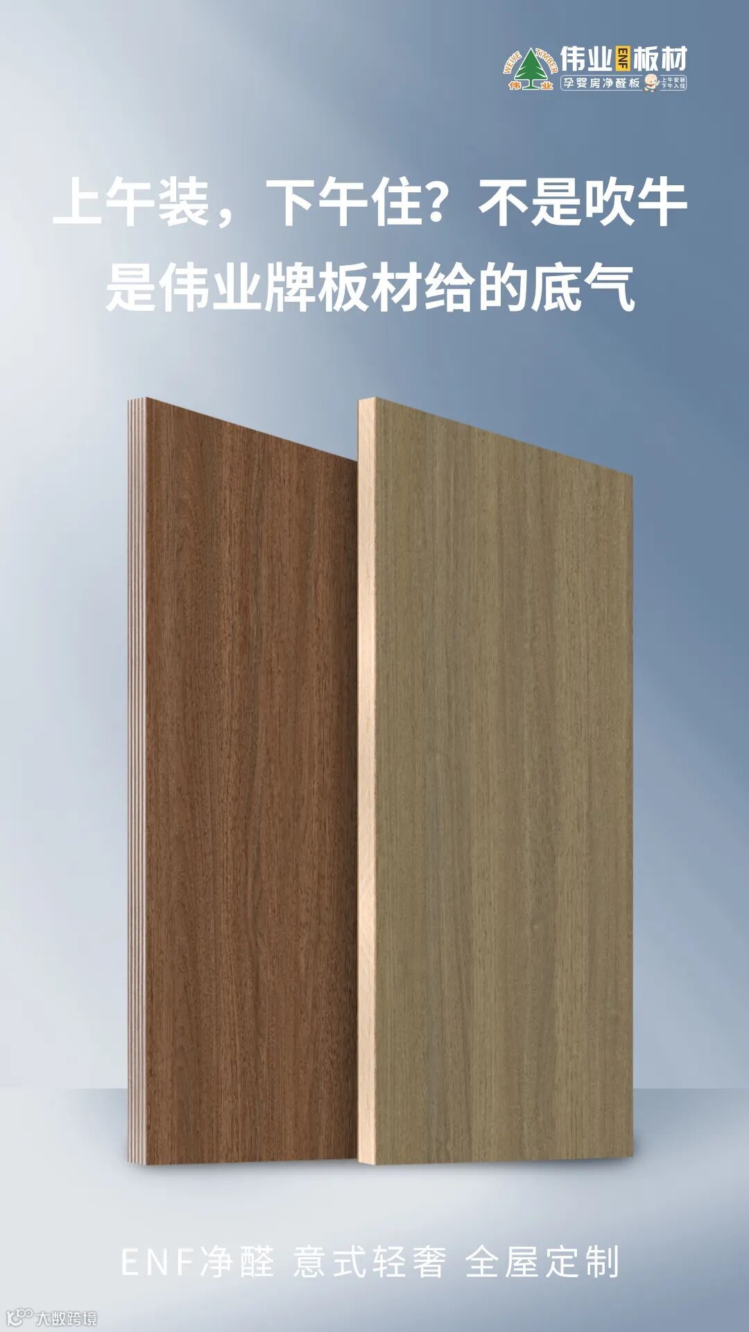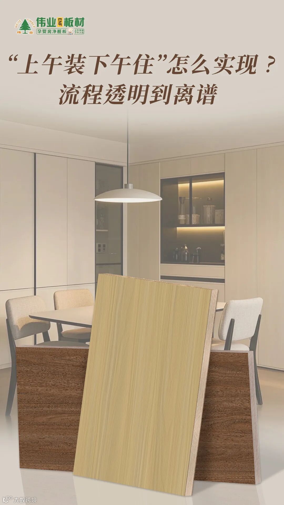 伟业牌板材不贩卖焦虑,只提供解决方案。怕甲醛?选伟业!上午装,下午住——这一次,让装修不再是一场与时间的漫长拉锯,而是一次顺畅、安心、充满期待的焕新之旅。