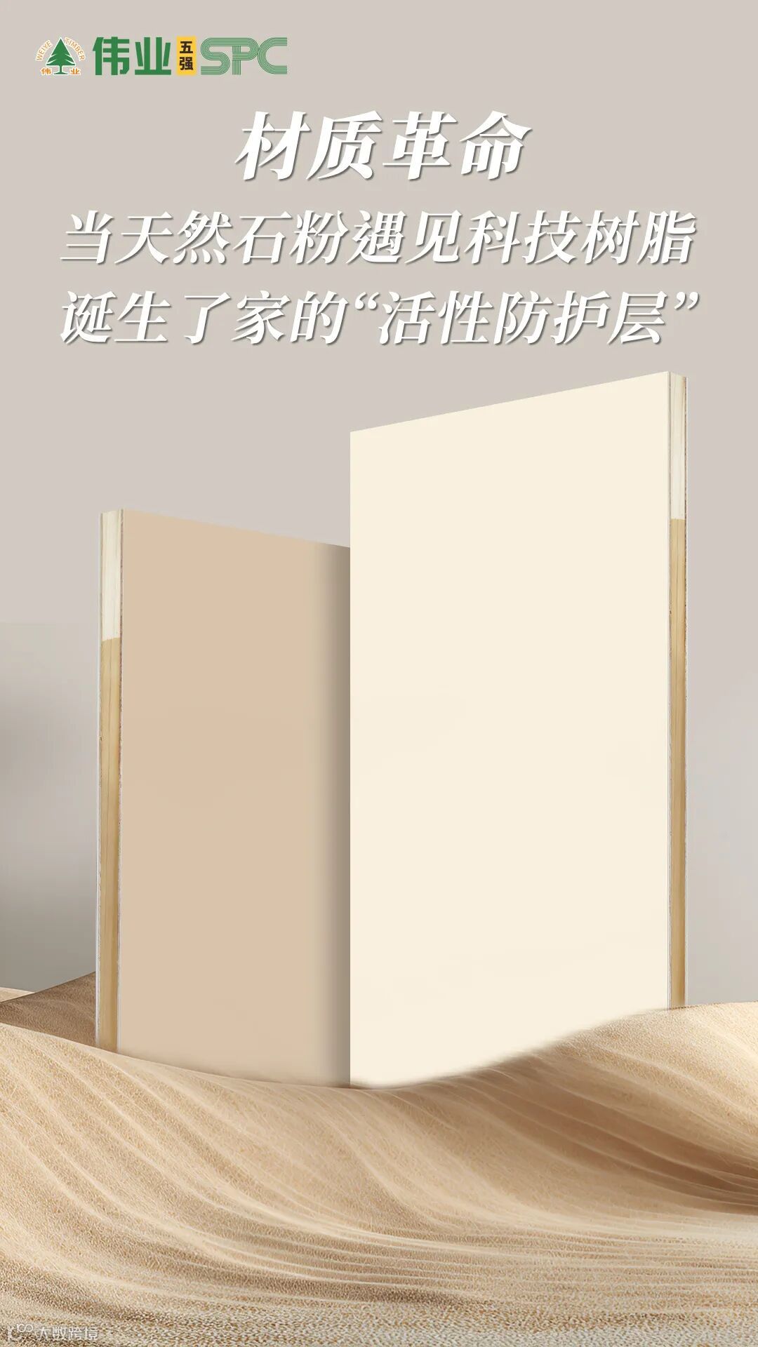 您对家装板材的认知,还停留在木头与胶水的简单复合吗?伟业五强SPC板,开启了一场材质溯源革命。它的核心SPC层,精选天然石材粉末,与环保高分子树脂在高温高压下共融新生。
