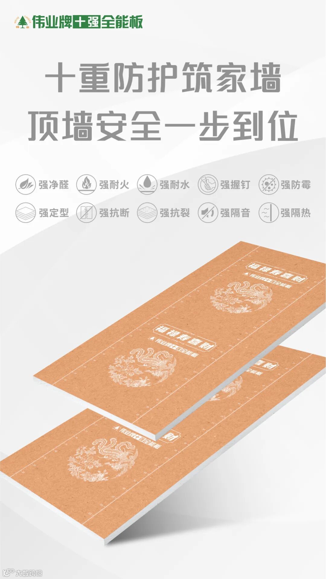 伟业十强全能板以“一板十强”的全能表现,为家居撑起全方位防护伞,让顶墙从装修短板变成生活保障,让每个家庭都能告别后顾之忧。