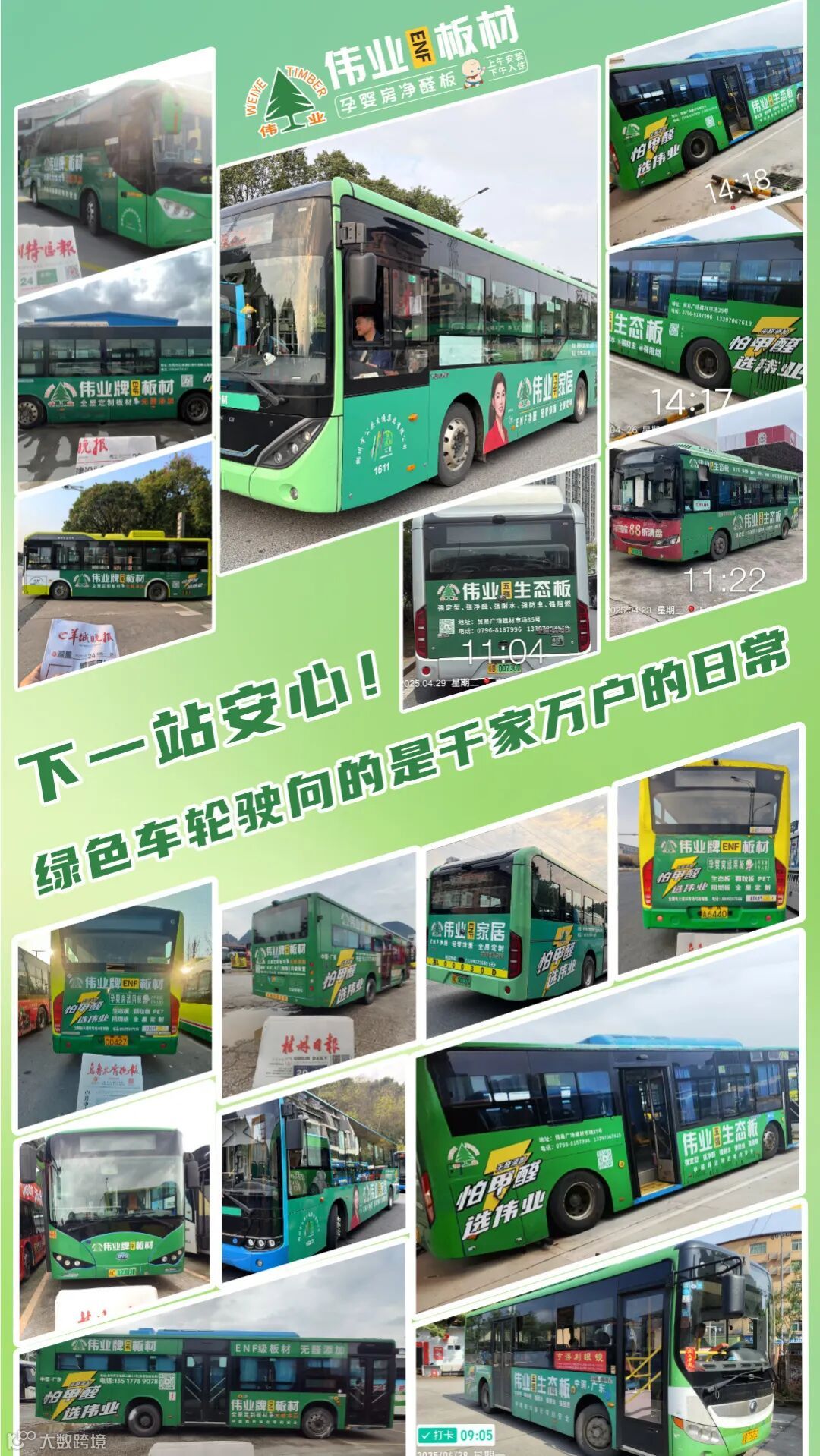从吉安到桂林,从乌鲁木齐到赣州,再到今天的郴州,伟业板材的绿色公交广告,正以扎实的脚步,将健康的理念播撒至全国千城。每一次亮相,都是品牌全国化战略的坚定一步,是“深耕区域,服务万家”初心的生动注脚。