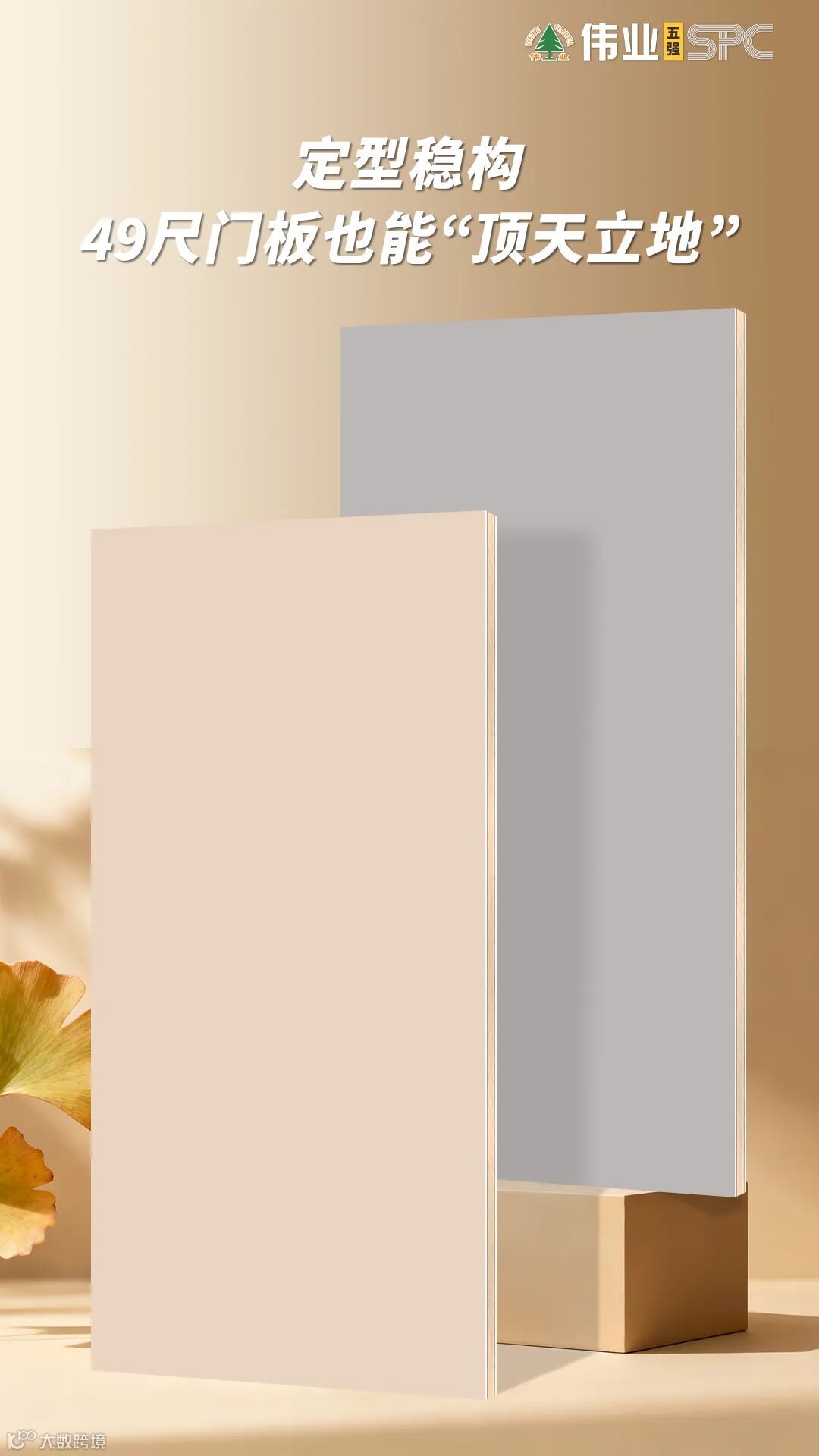 想做一门到顶衣柜,怕门板变形?伟业五强SPC板帮你实现。SPC层增强板材的横向强度,再配合五强板的硅氧骨架+木材纤维支撑,静曲强度远超20MPa,大尺寸门板不下垂、不变形,南北气候差异轻松应对。