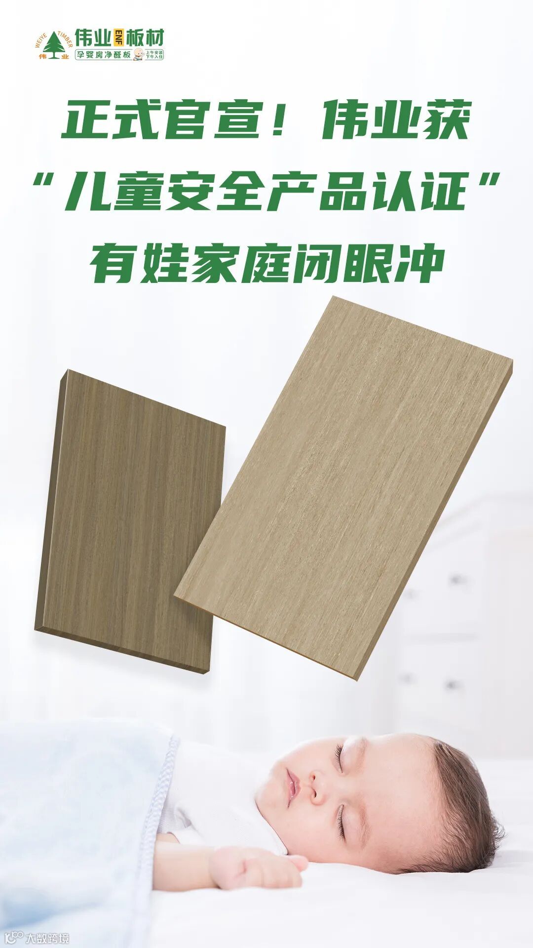现在,“儿童安全级”不再是少数品牌的标签,而是伟业板材的标配!从今往后,每一块伟业板材,都将承载着对家庭的守护与责任。
