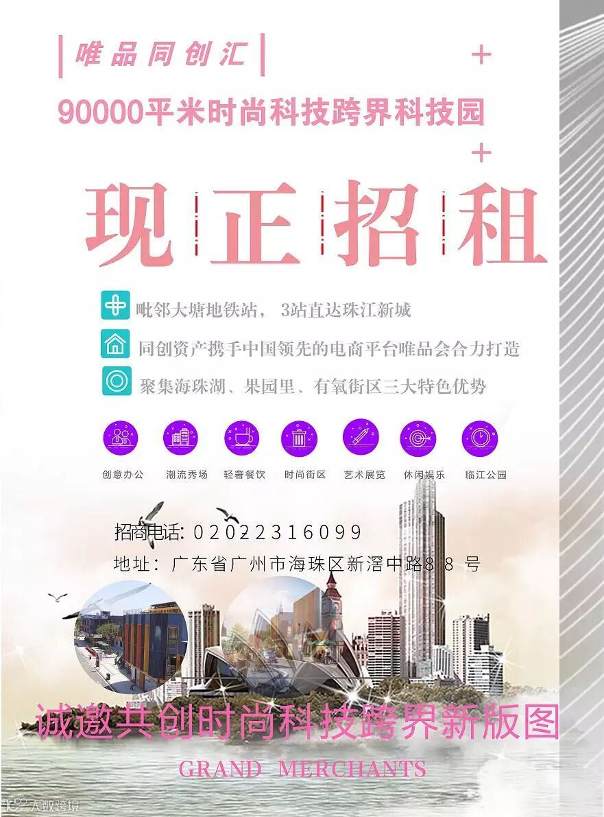 唯品同创汇坐拥海珠区黄金商业枢纽,距离大塘地铁站B出口仅400米之遥, 3站直达珠江新城,交通非常便捷。