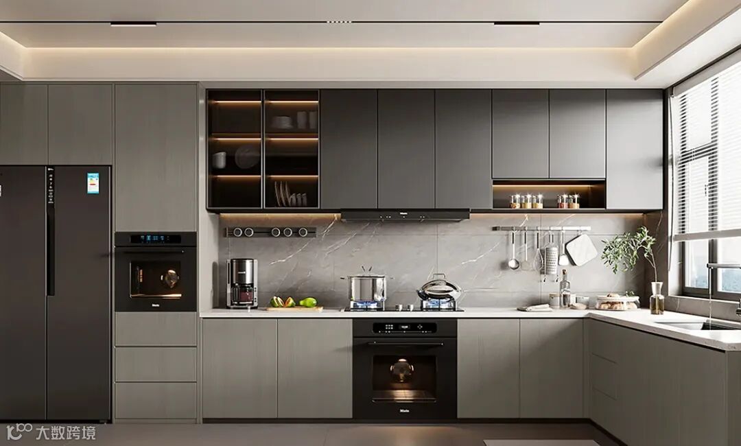 ✅ 厨房:“那不勒斯”木纹+金属拉手,耐脏又高级,朋友聚餐都追问是不是请了设计师!