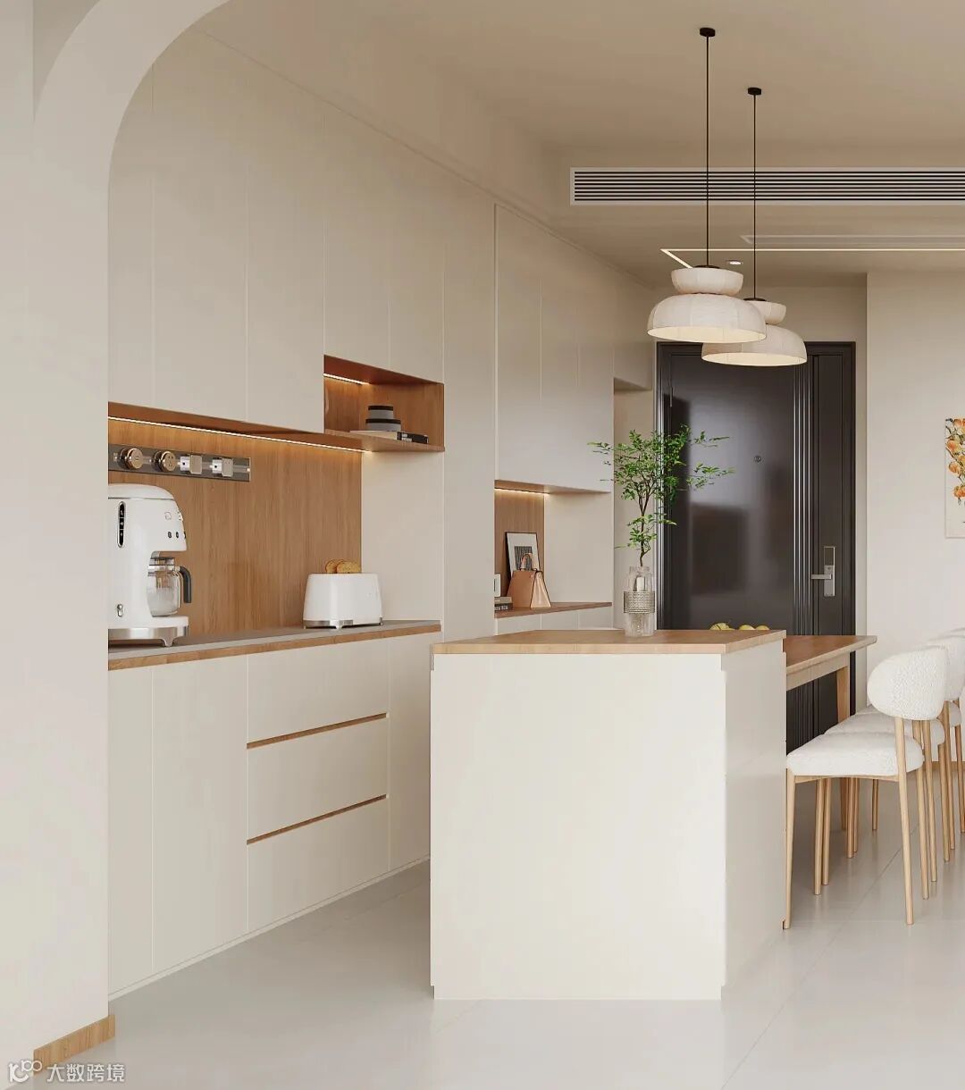 ✅ 浅色扩容术:奶油白、米杏色等浅色系搭配无主灯设计,80㎡小家瞬间亮堂通透,视觉空间 + 20㎡!