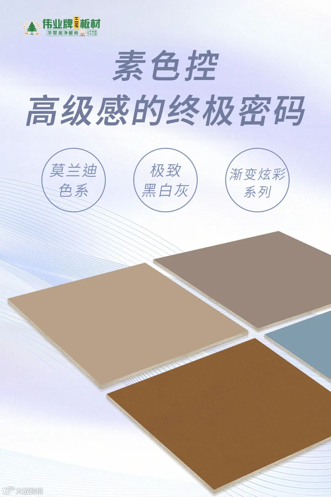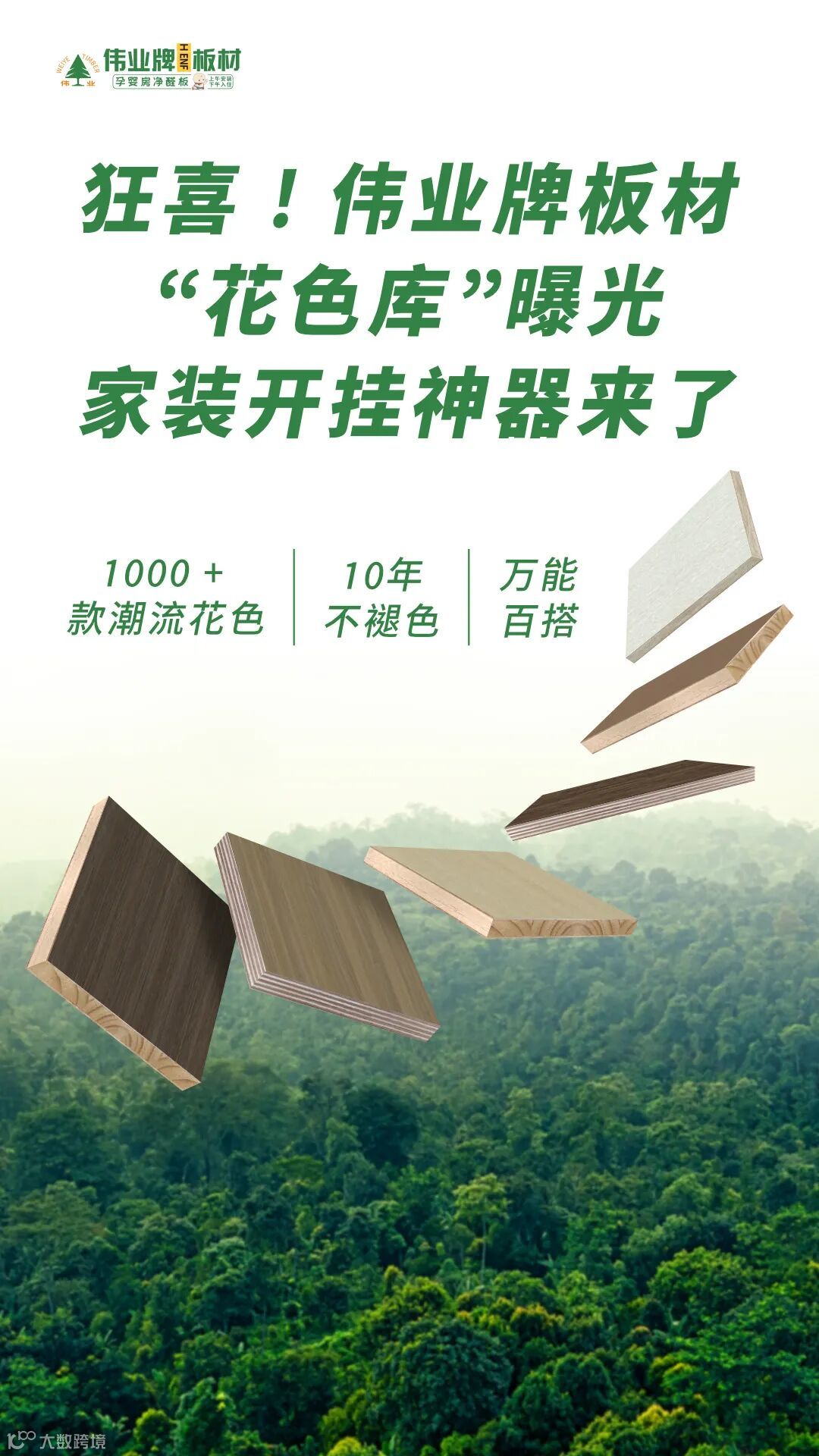 伟业牌板材不止是板材,更是家装的「调色盘」,1000+花色库,让你告别千篇一律,让每一个空间「有颜有料」,把日子过成「理想中的配色」~