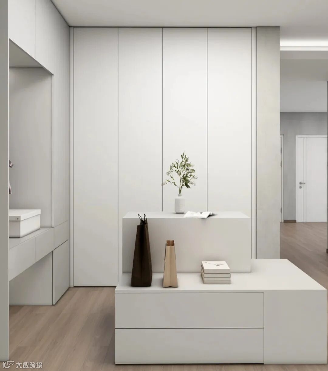 ✅ 衣帽间:“穆兰白”花色+一门到顶设计,高级感直接拉满;