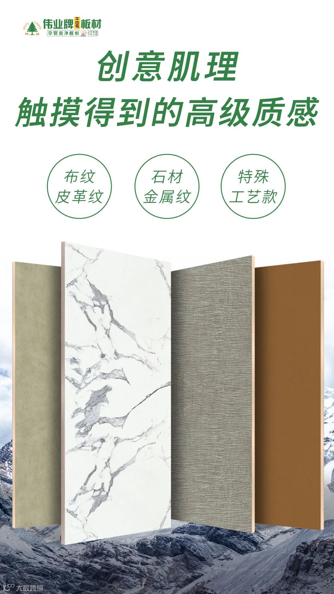 伟业牌板材甩出「王炸」花色库——1000+款潮流花色,从莫兰迪温柔系到复古港风腔调,从原木肌理到金属质感,每一款都是「空间颜值开挂神器」!颜值党狂喜,设计师私藏,这波直接把家装美学玩到天花板!