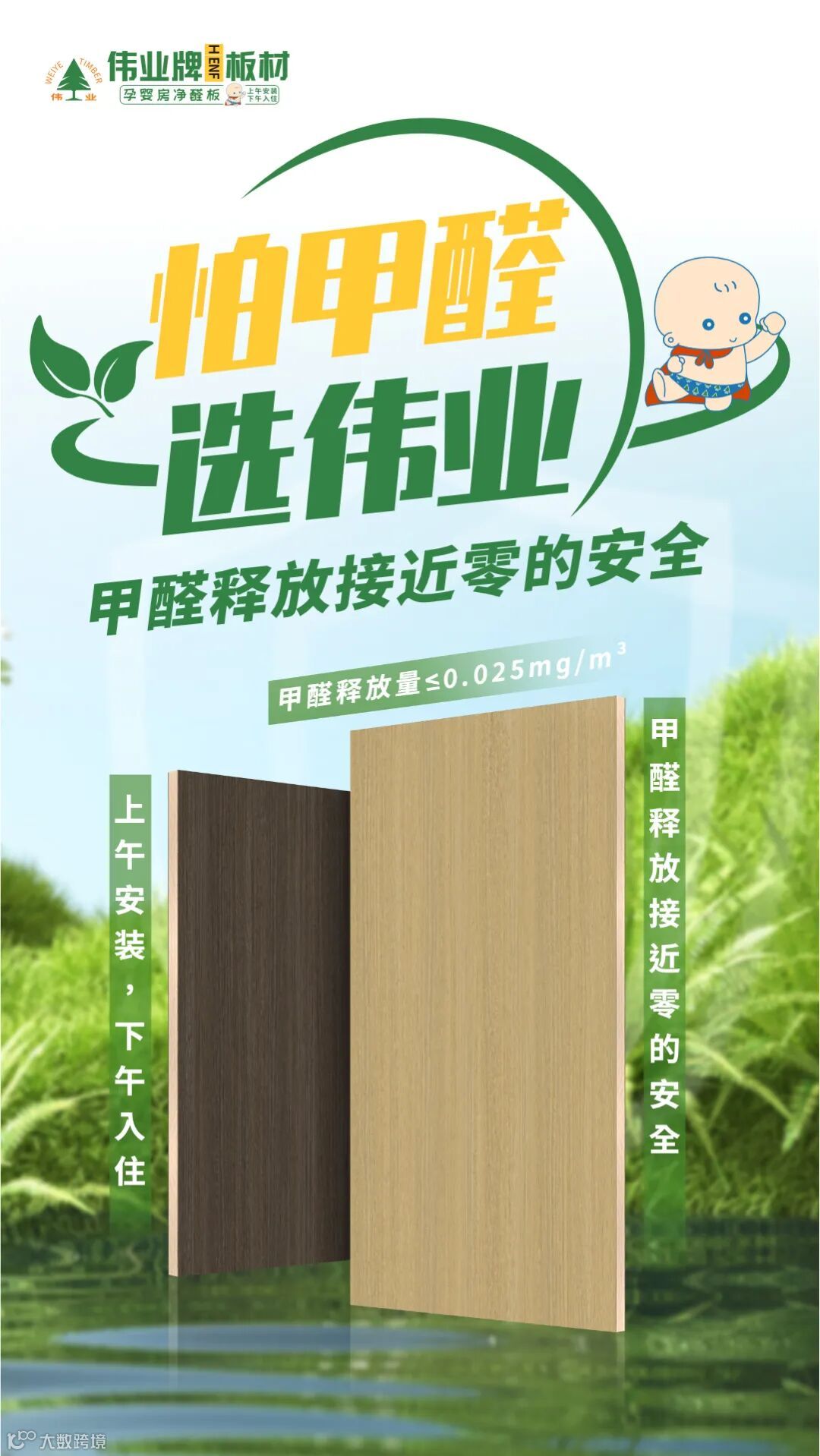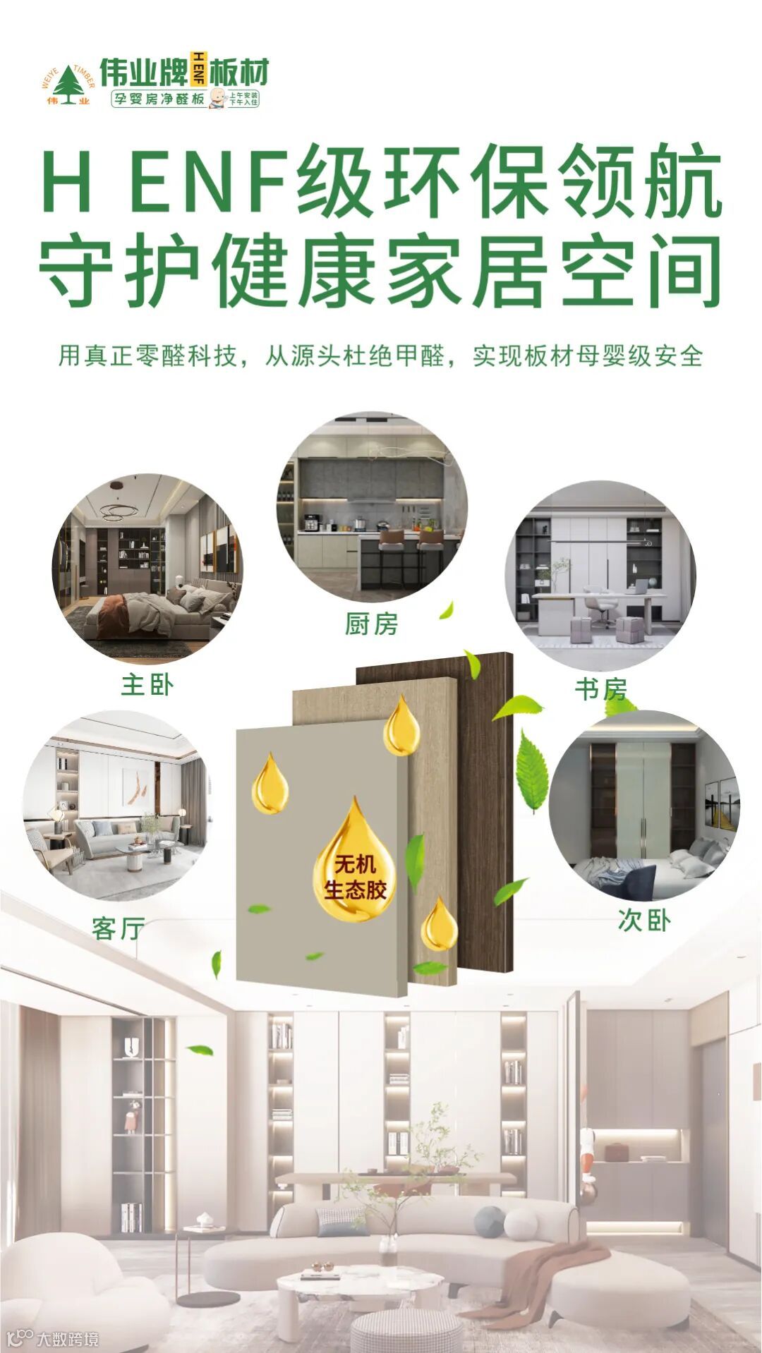 环保成为衡量板材品质的核心标尺,当甲醛成为家居“隐形杀手”,伟业牌HENF板材用行动破局,用真正零醛科技,从源头杜绝甲醛,实现板材母婴级安全。
