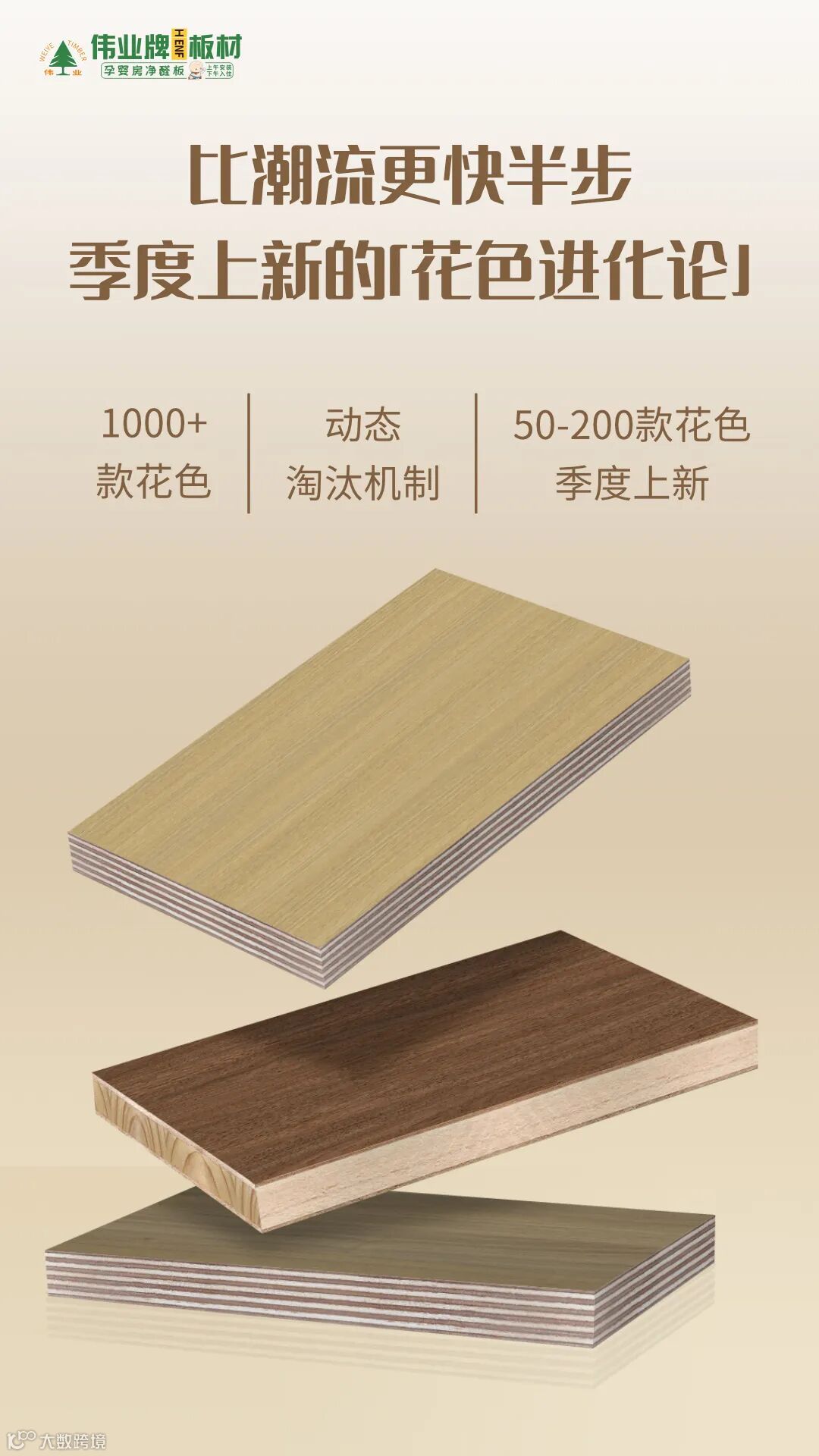 当多数品牌还在追赶流行时,伟业牌早已开启「花色进化」的加速模式!1000+款花色不仅是数量的堆砌,更是对全球设计趋势的超前预判——每一块板材,都是对未来美学的提前剧透!