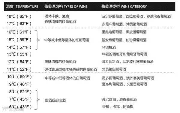 白葡萄酒如果侍酒温度太低,则不能使其果味和香气充分发挥出来。经橡木桶熟成的白葡萄酒如果侍酒温度过低,会使橡木风味和酸度更加突出。