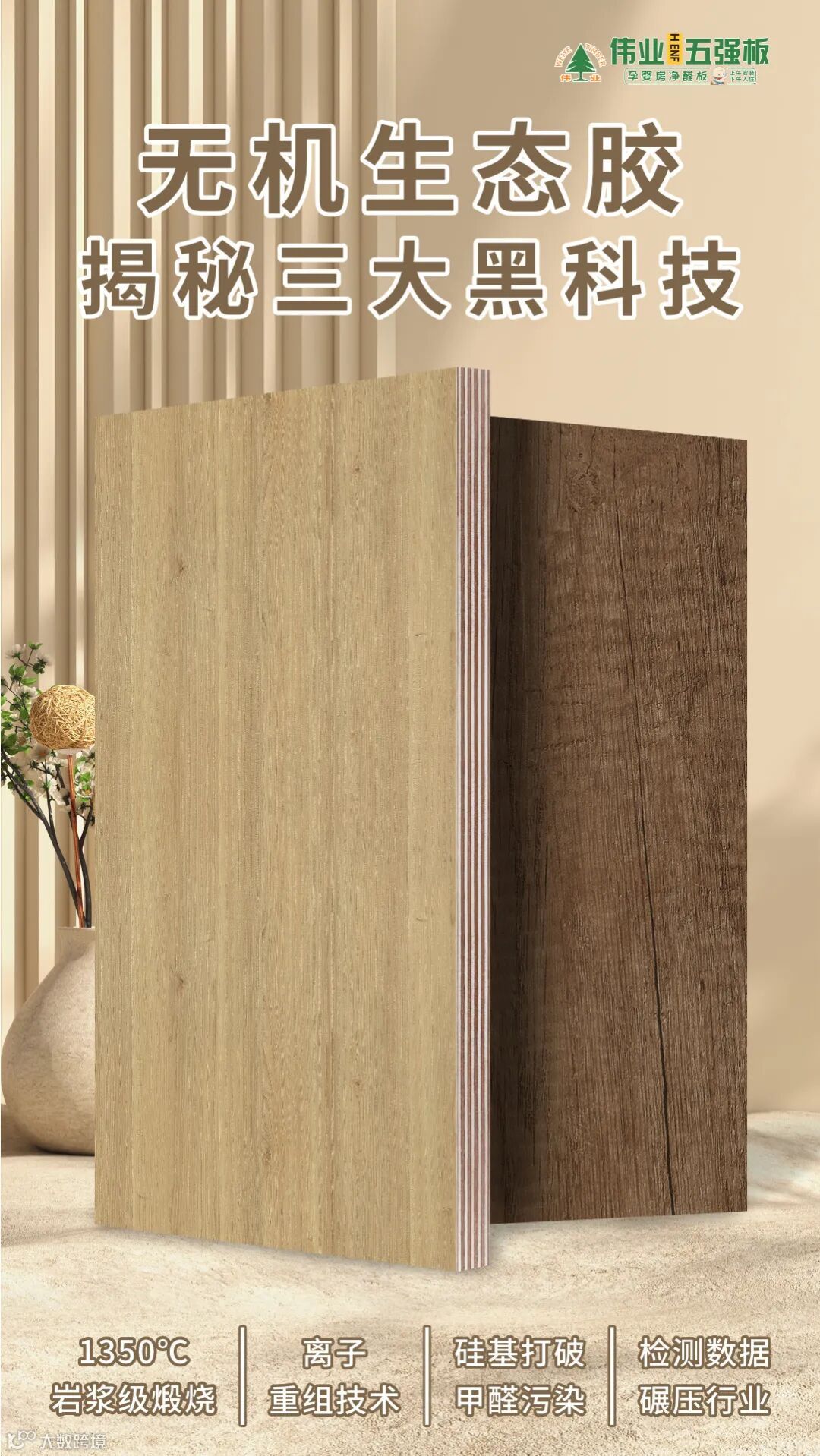 2025年,伟业五强板凭借无机生态胶技术成为行业的焦点,用户真实反馈:“装修后几乎无异味,专业检测甲醛含量近乎于 0,老人孩子住着特别安心!”当环保成为家居刚需,当安全成为家庭底线,伟业五强板以无机生态胶科技,为你扫清一切顾虑。从源头杜绝污染,用五大硬核性能守护家的每一寸空间。