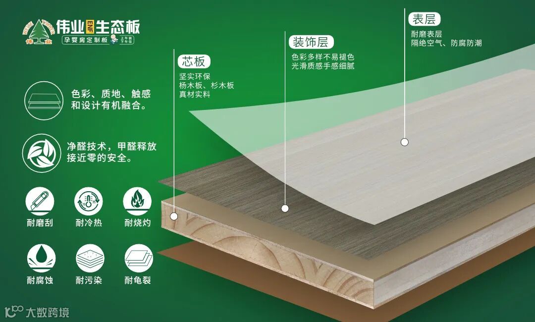 伟业ENF生态板始终秉持绿色环保的理念,致力于生产符合环保标准的生态板,产品不仅具有优异的物理性能,更在环保方面与花色方面表现出色,符合现代消费者对绿色生活的追求。此次荣获“生态板十大品牌”称号,是对环保理念的充分认可。